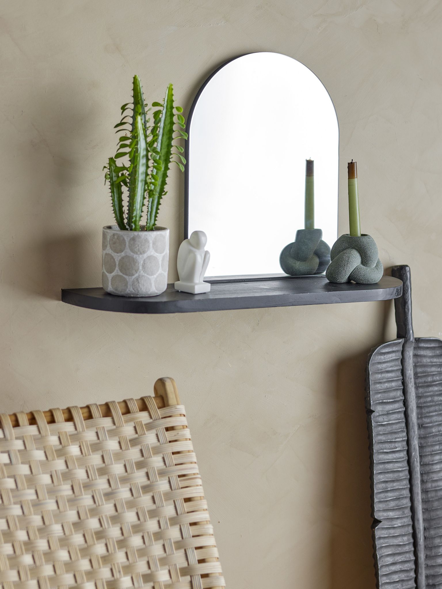 Annlie spegel med hylla i svart MDF, H48×L72×B20 cm från Bloomingville. Snygg och praktisk detalj som passar i ditt hem som spegel och hylla och håller länge.
