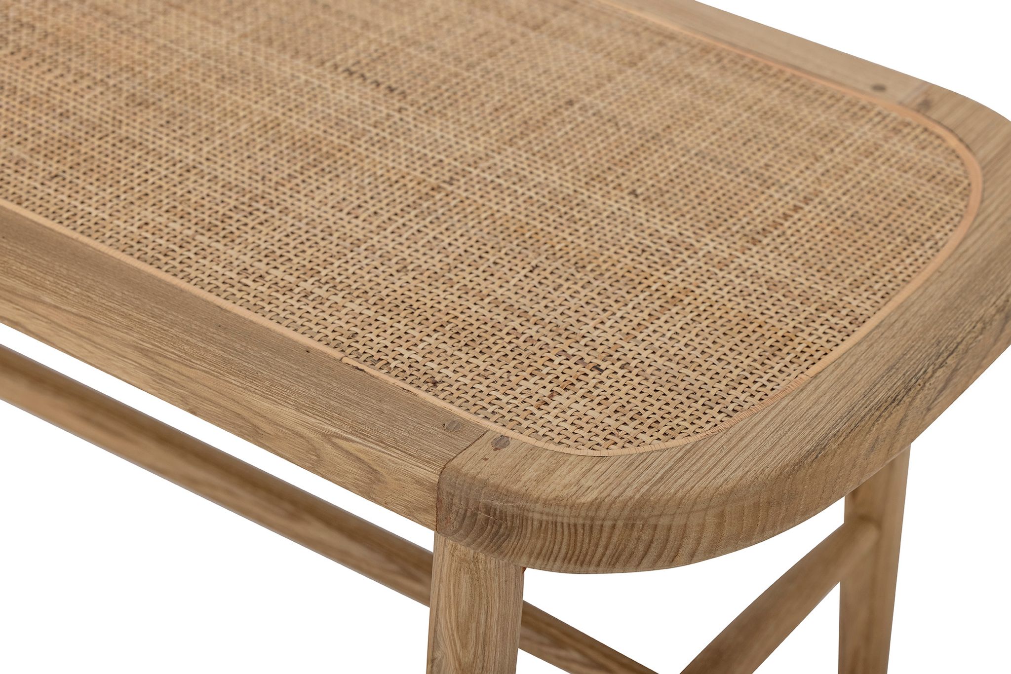 Rauke-bänken kombinerar en enkel design med naturligt material, vilket gör den lätt att placera i olika rum. Stommen i Sabrang teak gör att bänken håller länge, och cane-sitsen bjuder in till att slå sig ner en stund – exempelvis när du tar på dig skor eller läser en stund i sovrummet.