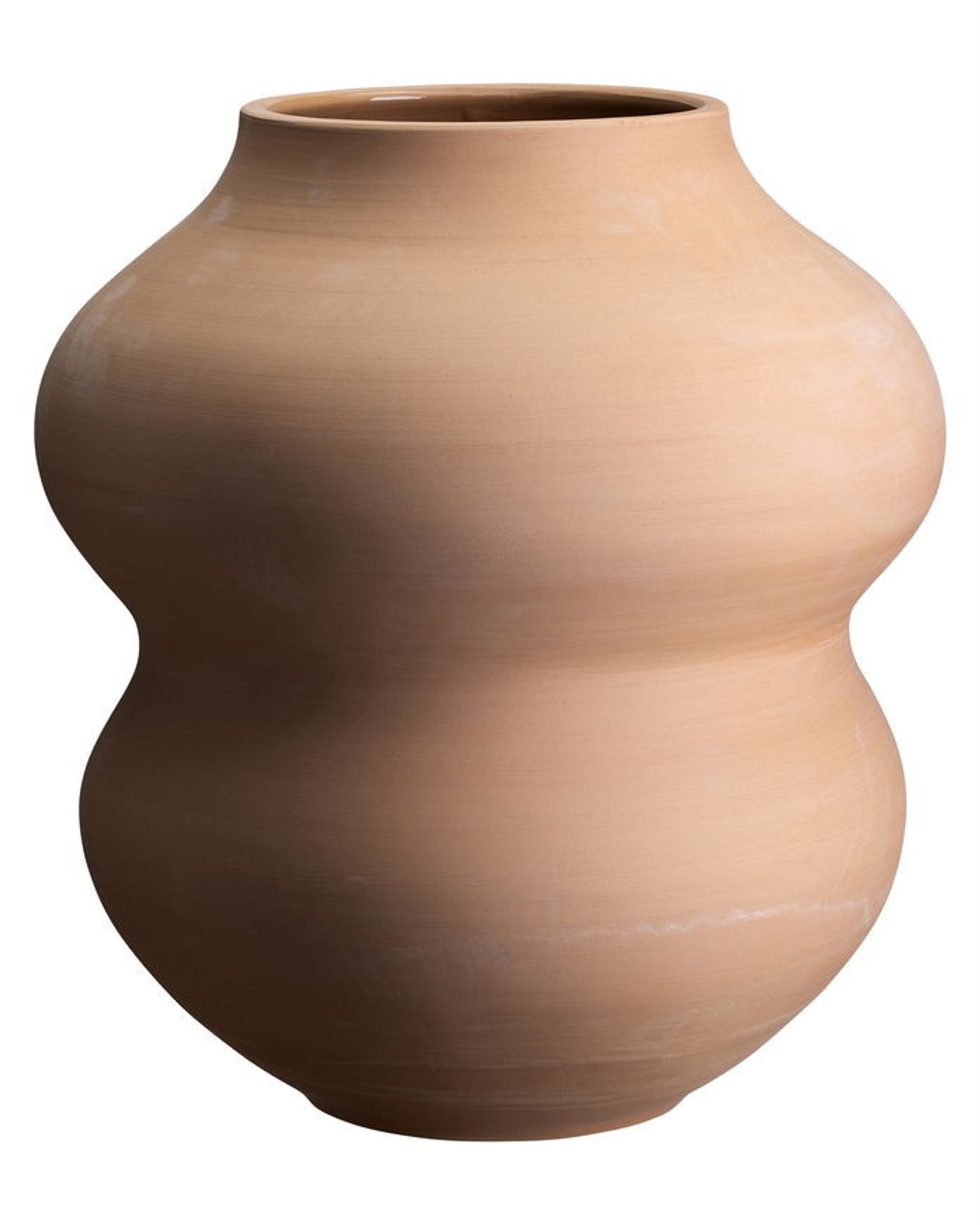 Upptäck Rosa Belle RAW-vasen i handgjord Maiolica-lera. En elegant och mångsidig dekoration för ditt hem, perfekt för blommor eller som serveringsskål.