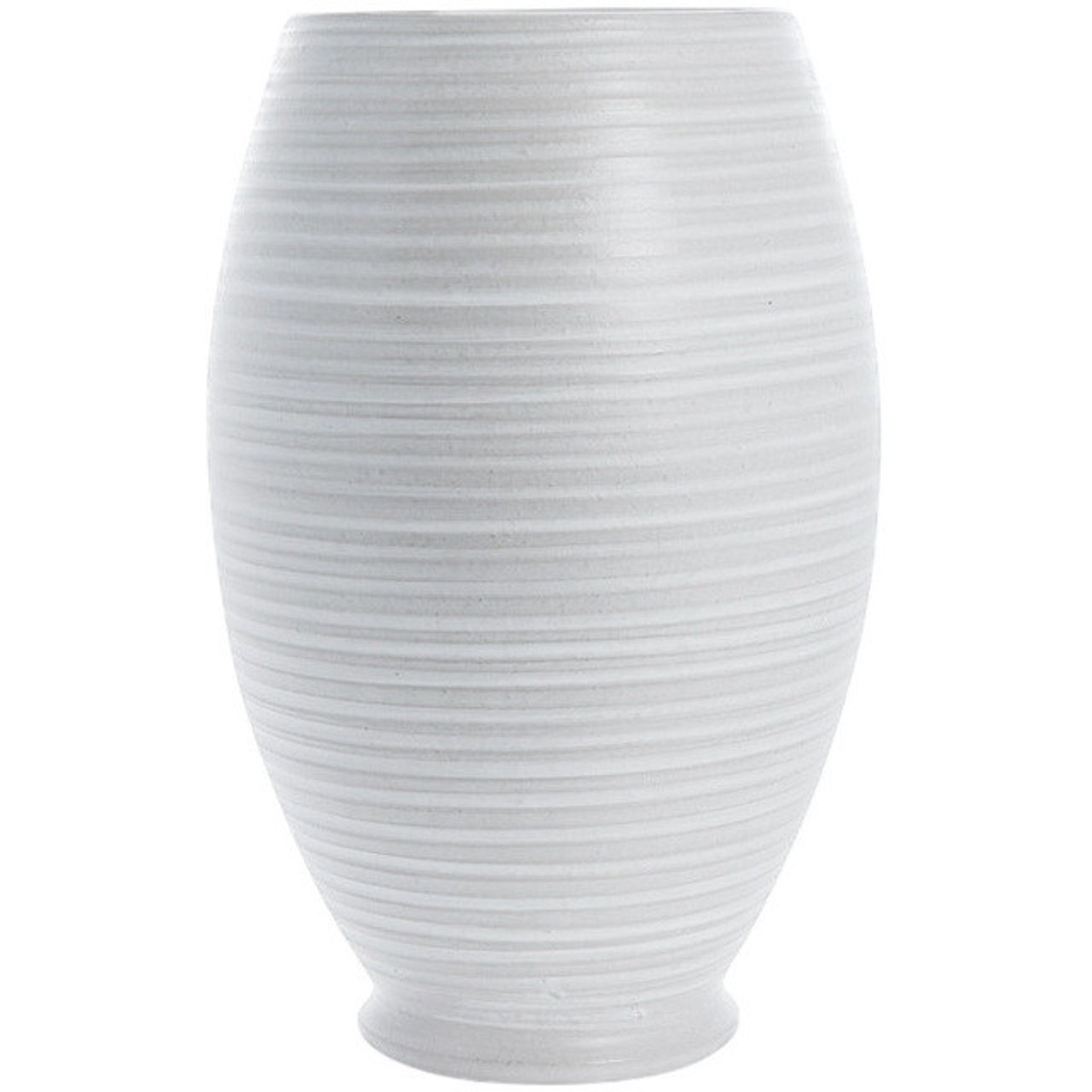 Blomkrukan är i keramik och har måtten 22x22x35 cm (diameter 22 cm, höjd 35 cm). Den benvita ytan och de diskreta fårorna ger struktur utan att ta över, så dina blommor får fokus.
