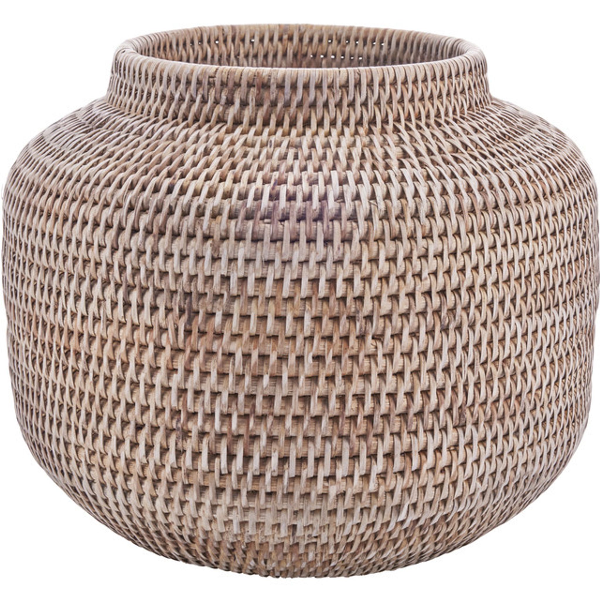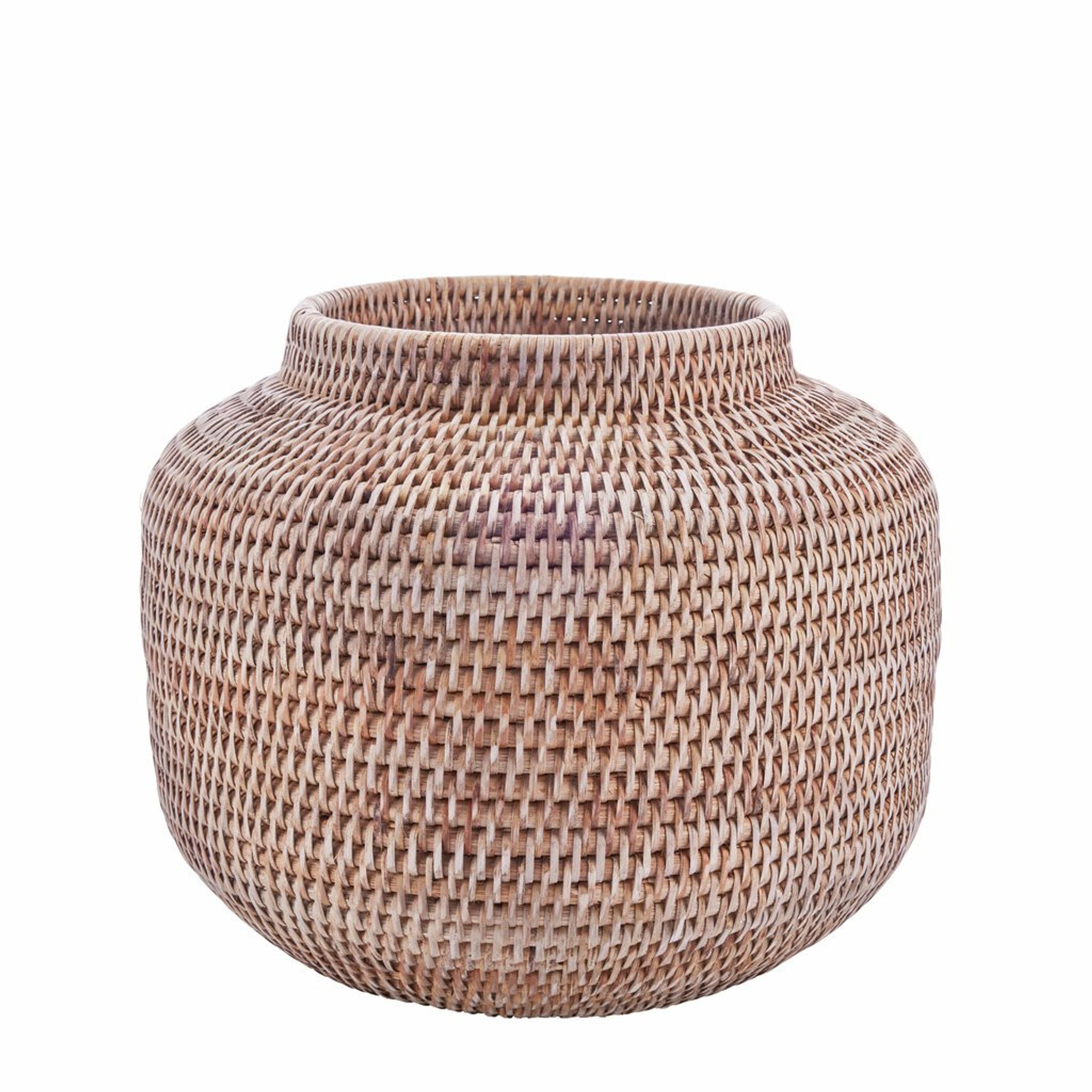 Handflätad blomkruka i rattan från Norah-serien av Lene Bjerre. Den här krukan passar lika bra i vardagsrummet som på balkongen eller uteplatsen och ger dina växter en stabil och naturlig plats i hemmet.
