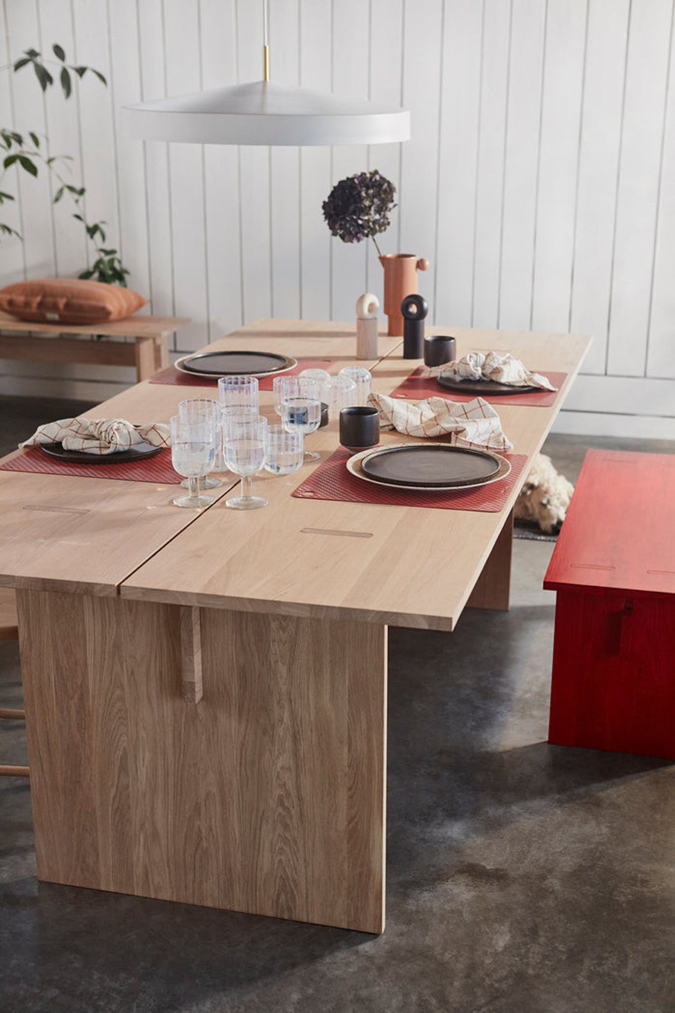 Bordet är gjort i massiv ek och tål dagligt bruk, vilket gör det lämpligt för en aktiv familj. Den runda formen skapar naturliga samtalsytor vid måltider och gör bordet till en välgjord mittpunkt i matplatsen. Enkel, trä-inspirerad design fungerar både som köksbord och matbord i öppna ytor.