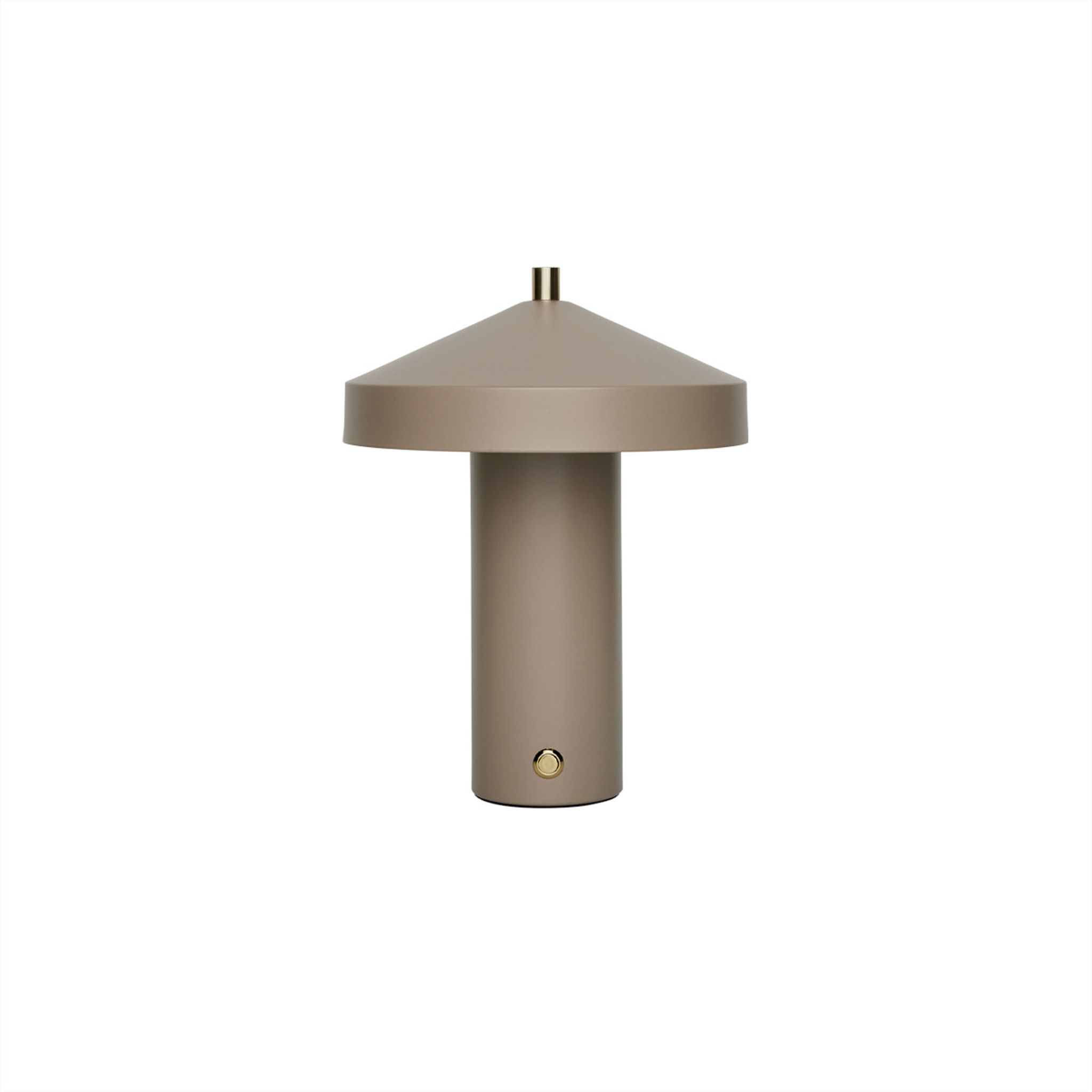 Lampan kombinerar jordnära lera med stål och mässing för en varm känsla i inredningen. Materialen ger ett stabilt intryck och passar in i moderna hem utan att ta över rummet. Tack vare den portabla designen kan du snabbt flytta lampan dit du behöver ljus.