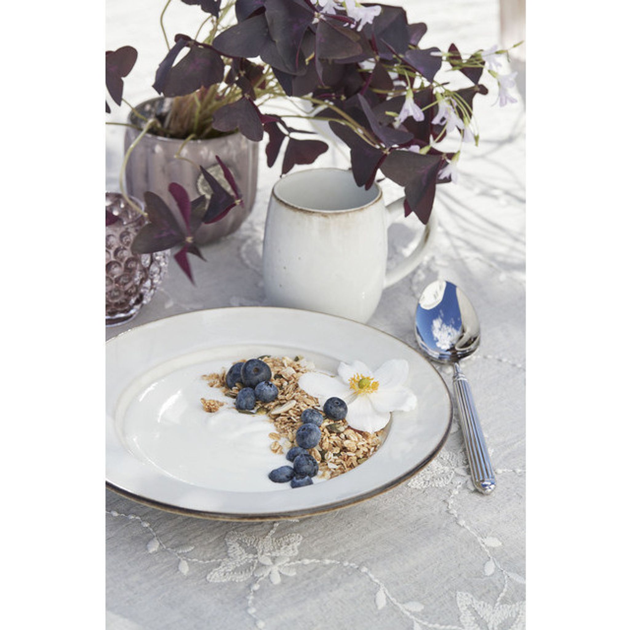 - Material: Stengods i vitt.