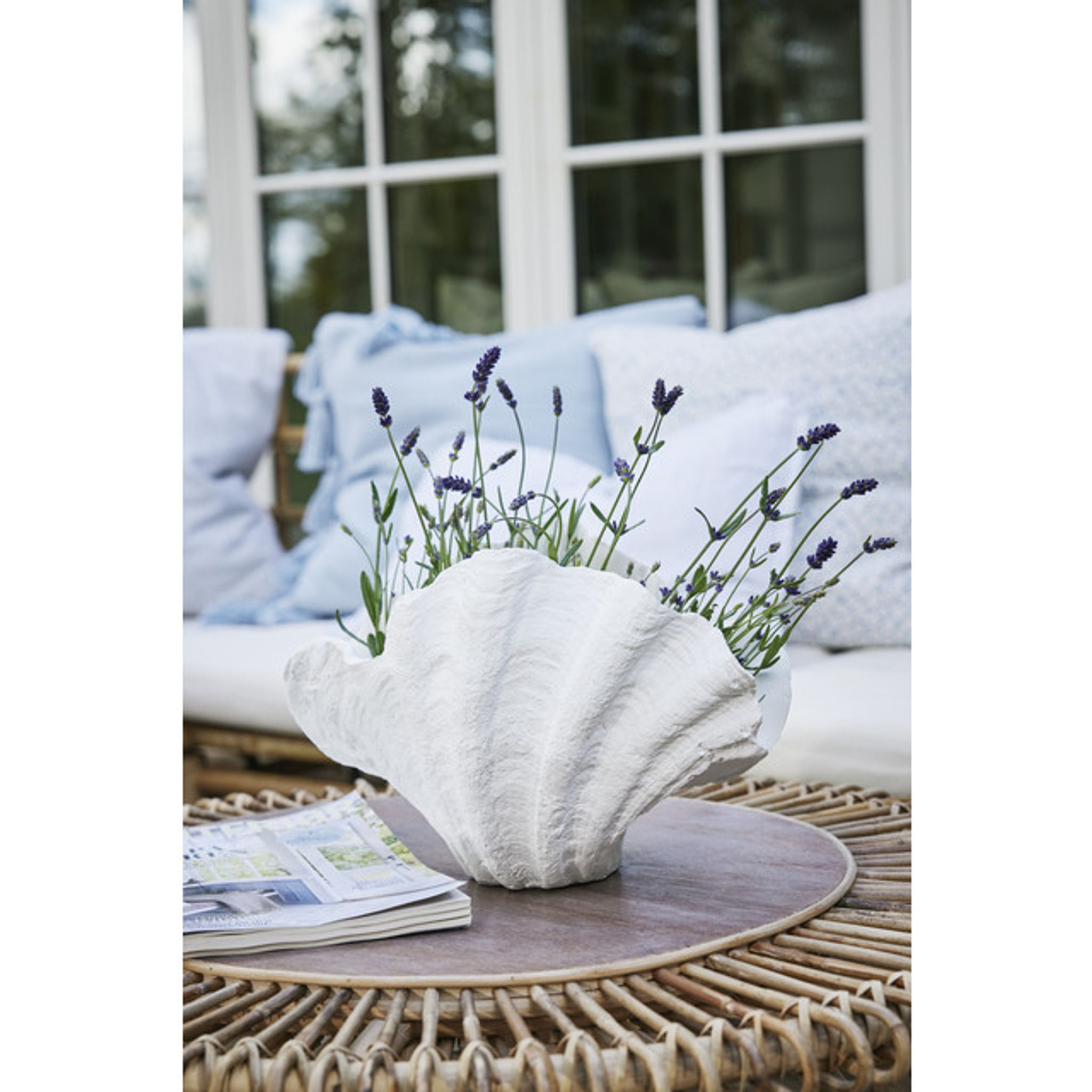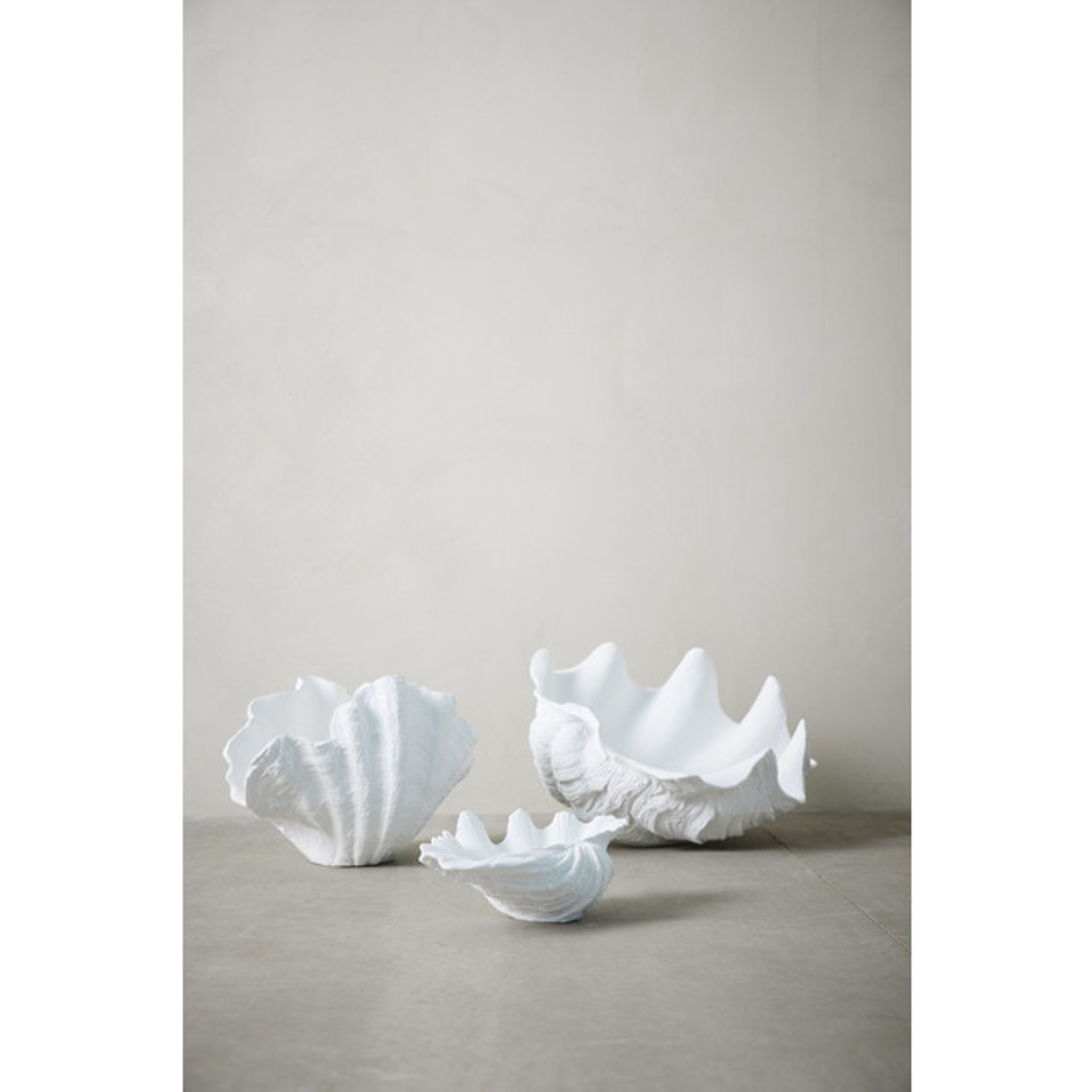 Shella dekoration i vit polyresin, H23 × B26 × D32 cm från Lene Bjerre. Den är snygg och praktisk, passar på hyllan eller som bordsdekoration i ditt vardagsrum; funkar bra och håller länge.