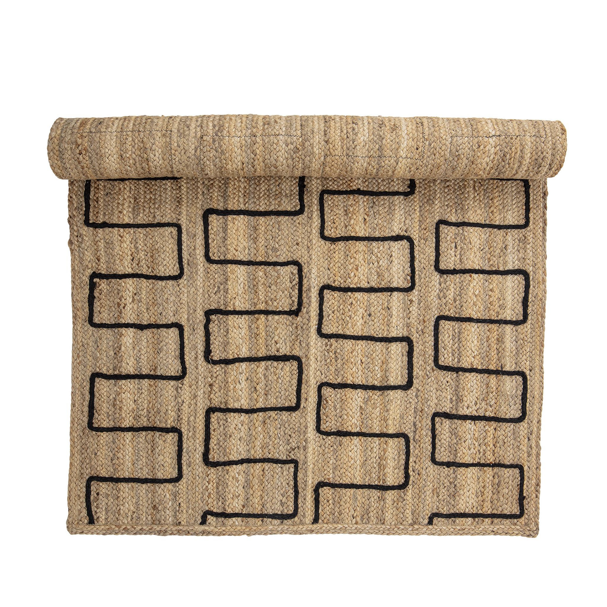 Dell Matta Brun Jute från Bloomingville är en hållbar matta i 100% jute med en varm brun ton och svart geometriskt mönster – perfekt för alla rum.
