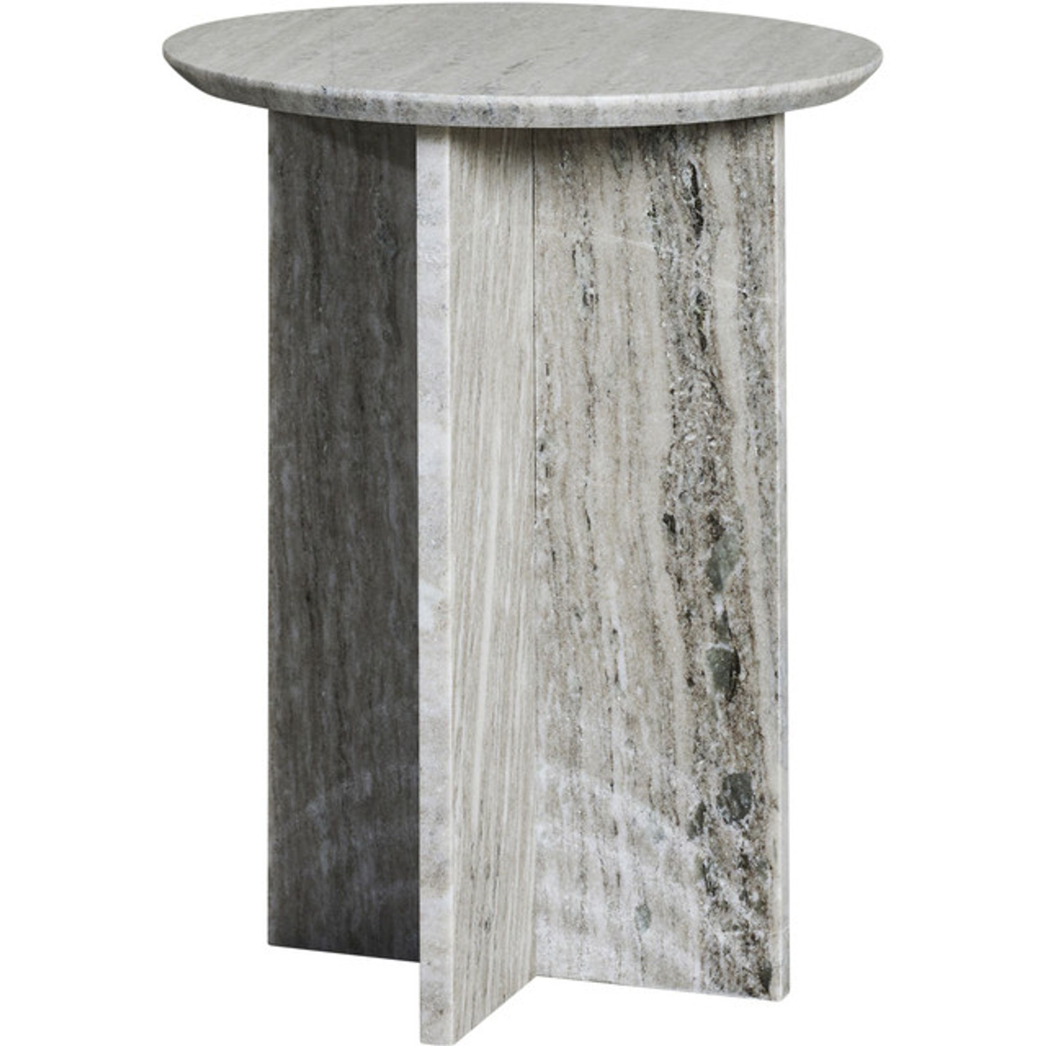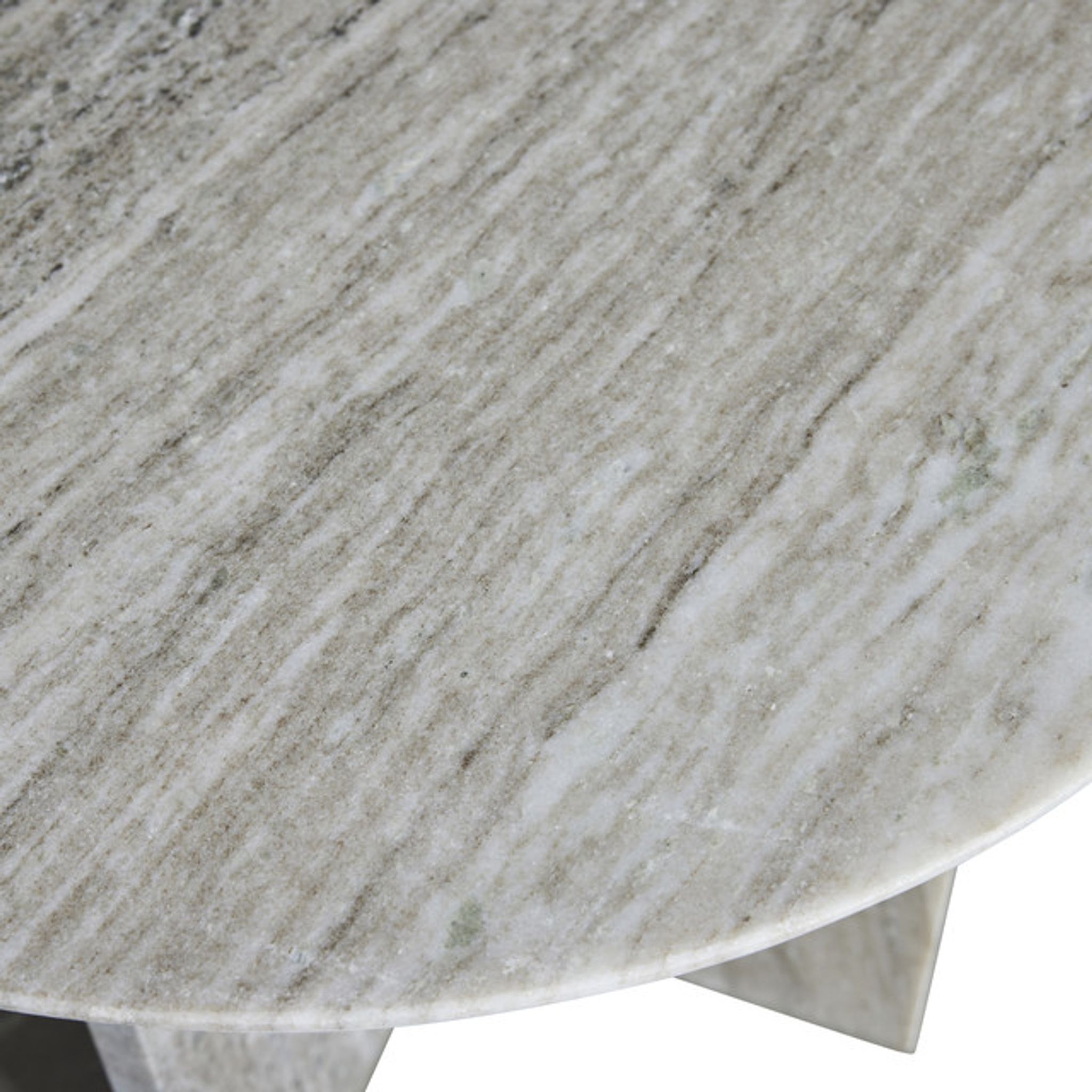 Elivinne marmorsidobord kombinerar form och funktion för dig som vill ha ett bord som både ser bra ut och funkar i vardagen. Den runda skivan gör det enkelt att ställa fram kaffe eller visa upp en vas, och korsfoten bidrar till stabilitet utan att ta över rummet.