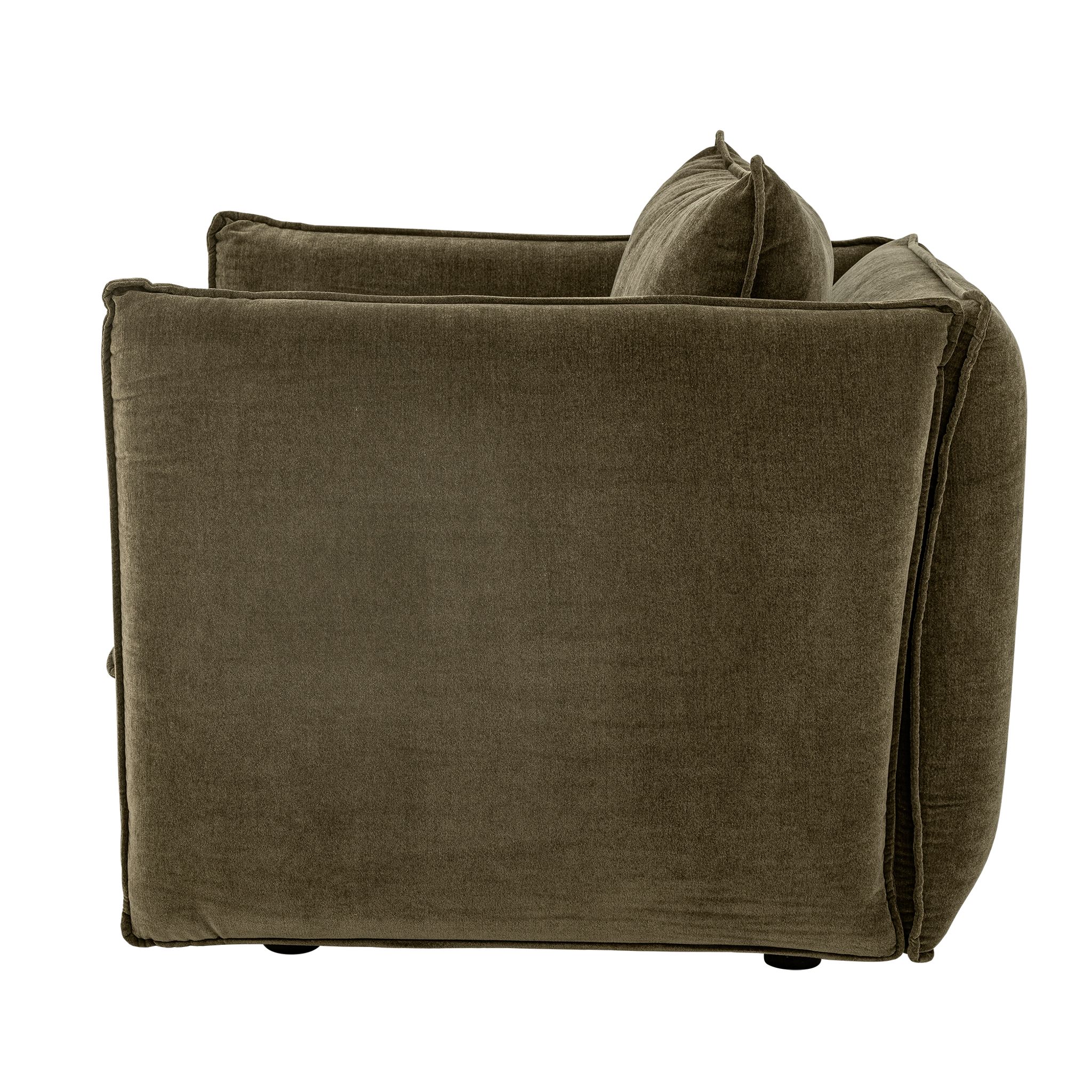 Austin loungefåtölj från Bloomingville är en grön fåtölj i mjuk velour som passar i vardagsrum, läshörna eller som extra sittplats när du vill slappna av med en bok eller ta en paus. Den fungerar bra som en bekväm läsplats eller som en stilren accent i ditt hem.