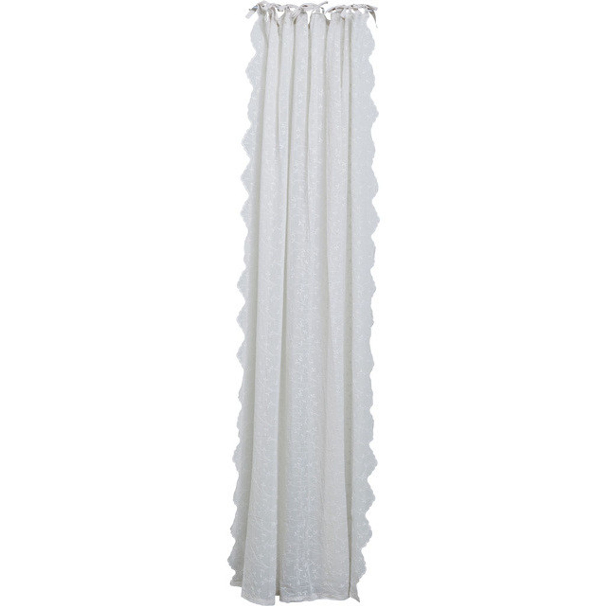Eloise är en broderad gardin från Lene Bjerre som passar i vardagsrum och sovrum där du vill ha både ljusinsläpp och insynsskydd. Den fungerar som en gardinlängd som ger täckning utan att ta över rummet, och gör det enkelt att skapa en ombonad känsla vid fönstret.