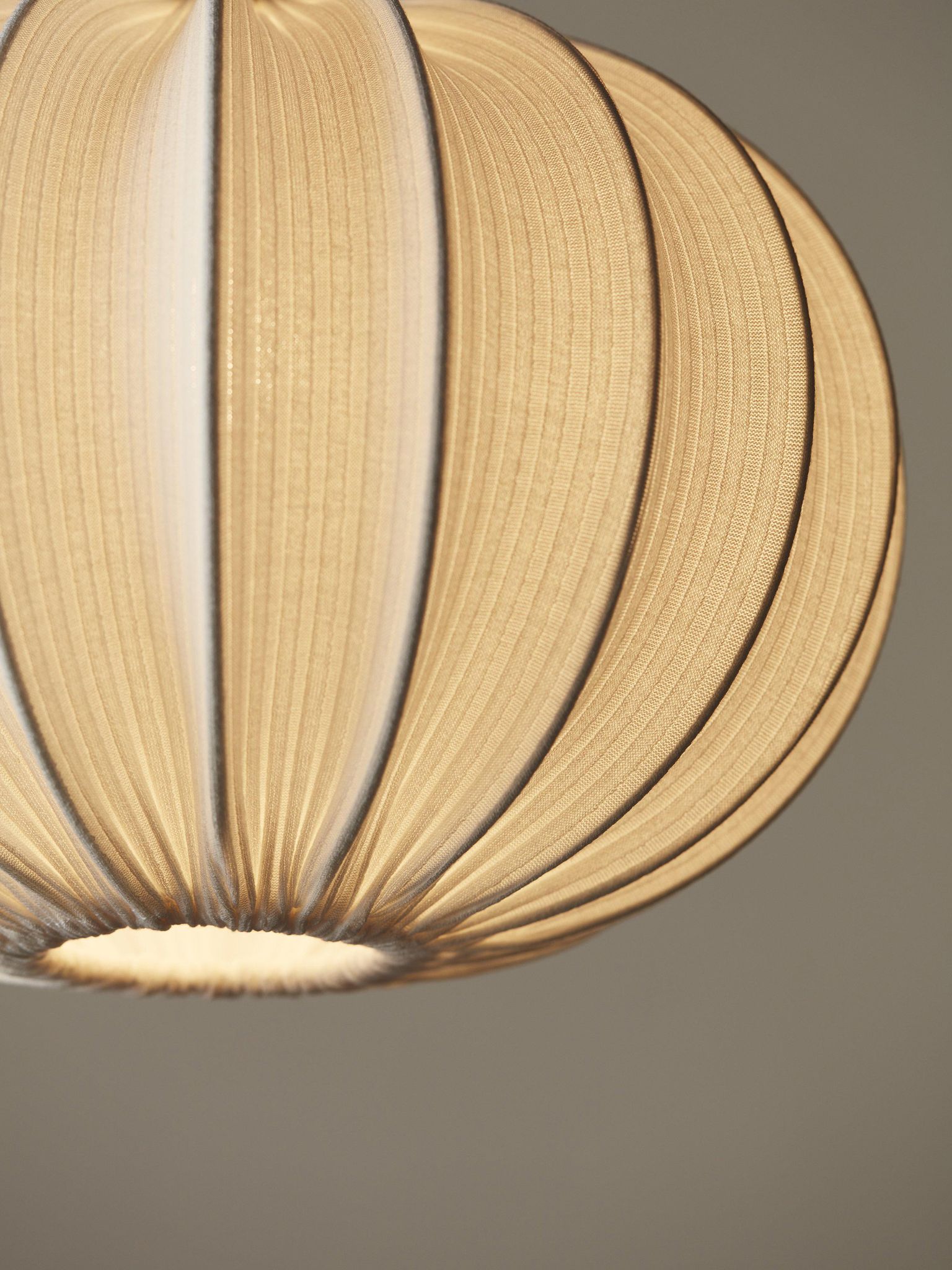 Upptäck PR Home Hilma Takskärm Jersey rib Offwhite, en elegant taklampa som förvandlar ditt hem med sin stiliga design. Den ribbstickade strukturen i jerseytyg skapar ett vackert och mjukt ljus när lampan är tänd, vilket ger en varm och inbjudande atmosfär.