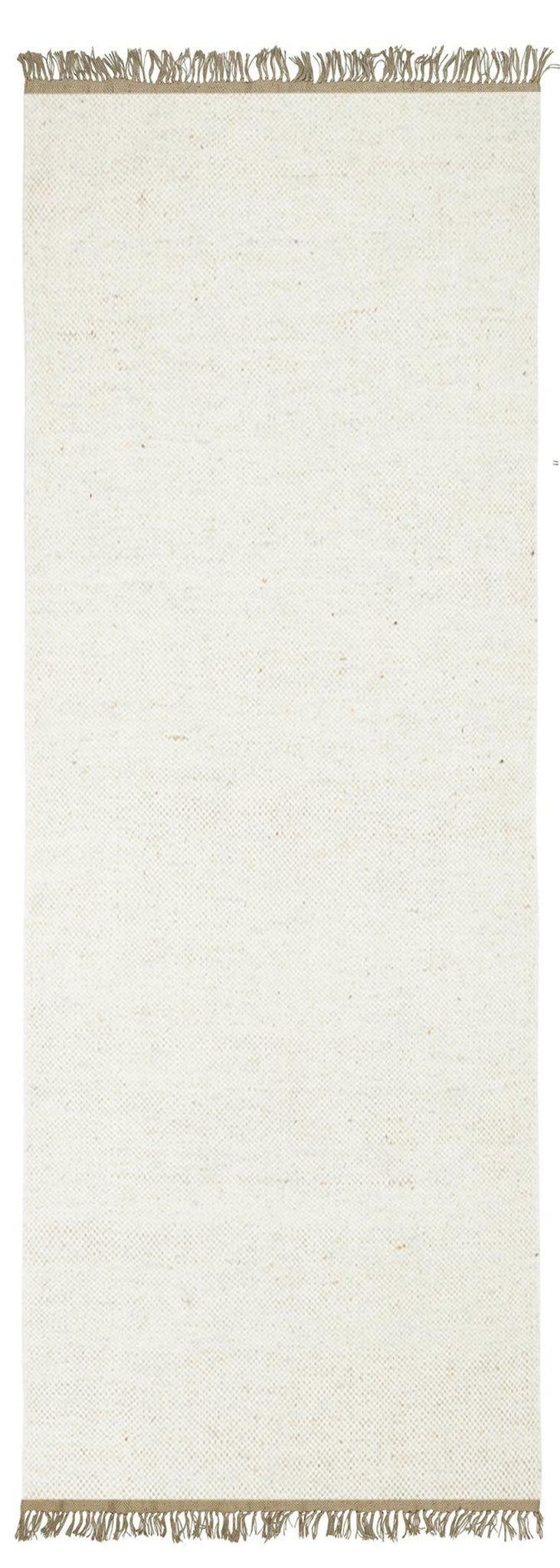 Upptäck den eleganta och stilrena ullmattan som förvandlar ditt hem. Med en slät väv och jutevarp erbjuder denna matta både komfort och hållbarhet. Den naturliga smuts- och vattenavvisande egenskapen hos ull gör den perfekt för alla rum. Rengör enkelt fläckar med en fuktig trasa eller överlämna den till en professionell mattvätt för en grundlig rengöring. Observera att varje matta är ett unikt hantverk, vilket kan resultera i små variationer i väven. Med måtten 70x240 cm passar den utmärkt i både hallen och vardagsrummet. Ge ditt hem en touch av kvalitet och stil!