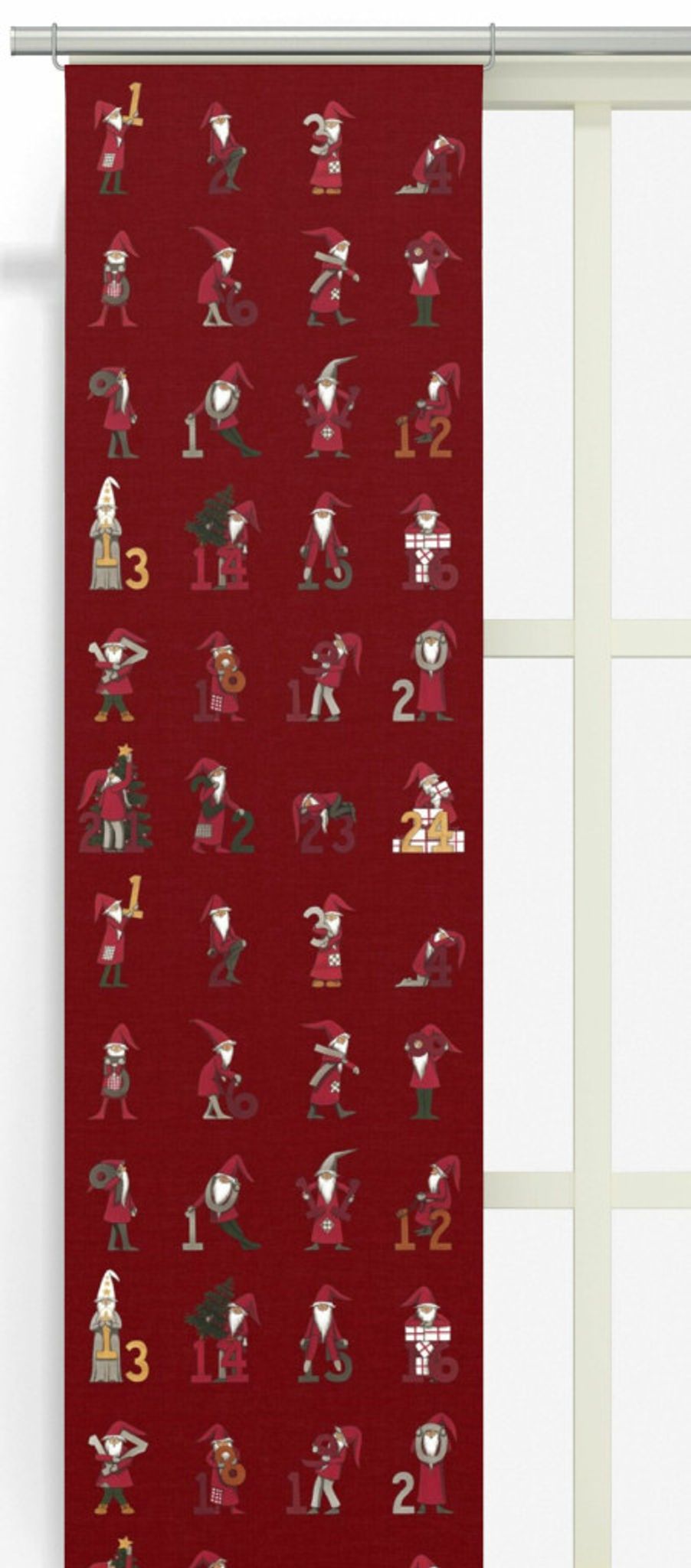 Kalendertomtar röd panellängd 2 pack – en charmig adventskalender i bomull från Arvidssons Textil, designad av Mialotta Arvidsson Mars. En hållbar och mjuk juldekoration som sprider glädje i december.