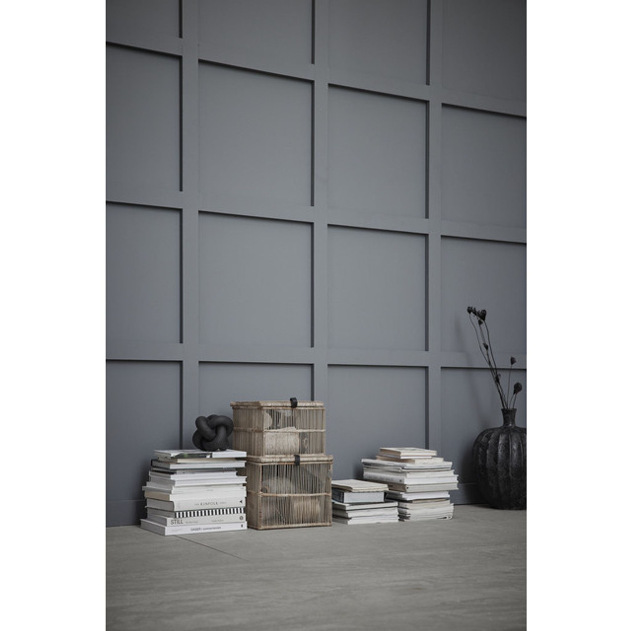 Korgarna är tillverkade av tunna bambustavar och 2 mm rottingskal, handformade och ihopsatta av hantverkare. Det gör varje korg unik och ger en naturlig känsla i ditt hem. Läderremmarna gör det enkelt att lyfta på locket och flytta korgen mellan rum.