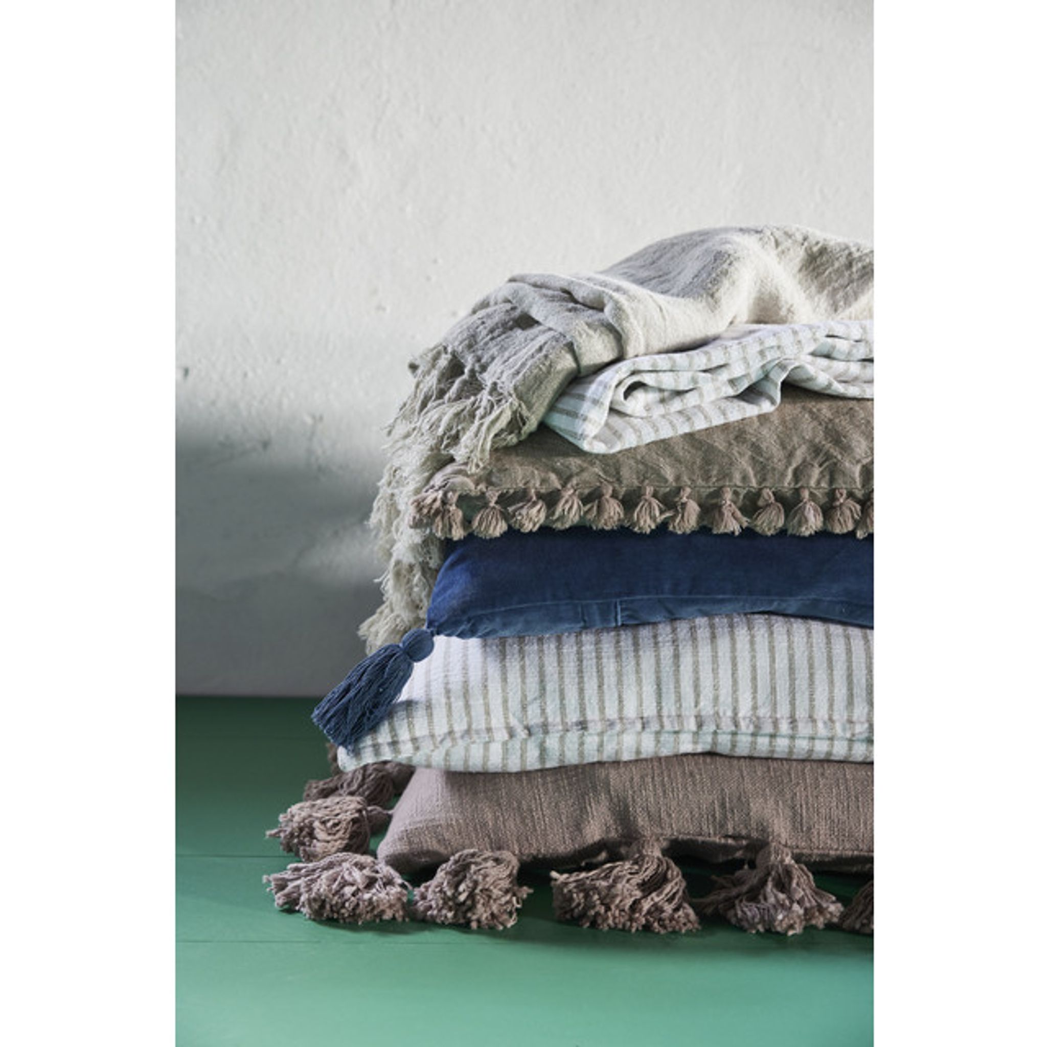 Tvätta i maskin på 30 °C. Färgen kan blekna vid direkt solljus över tid. Eftersom kudden är handgjord kan små variationer i färg och struktur förekomma.