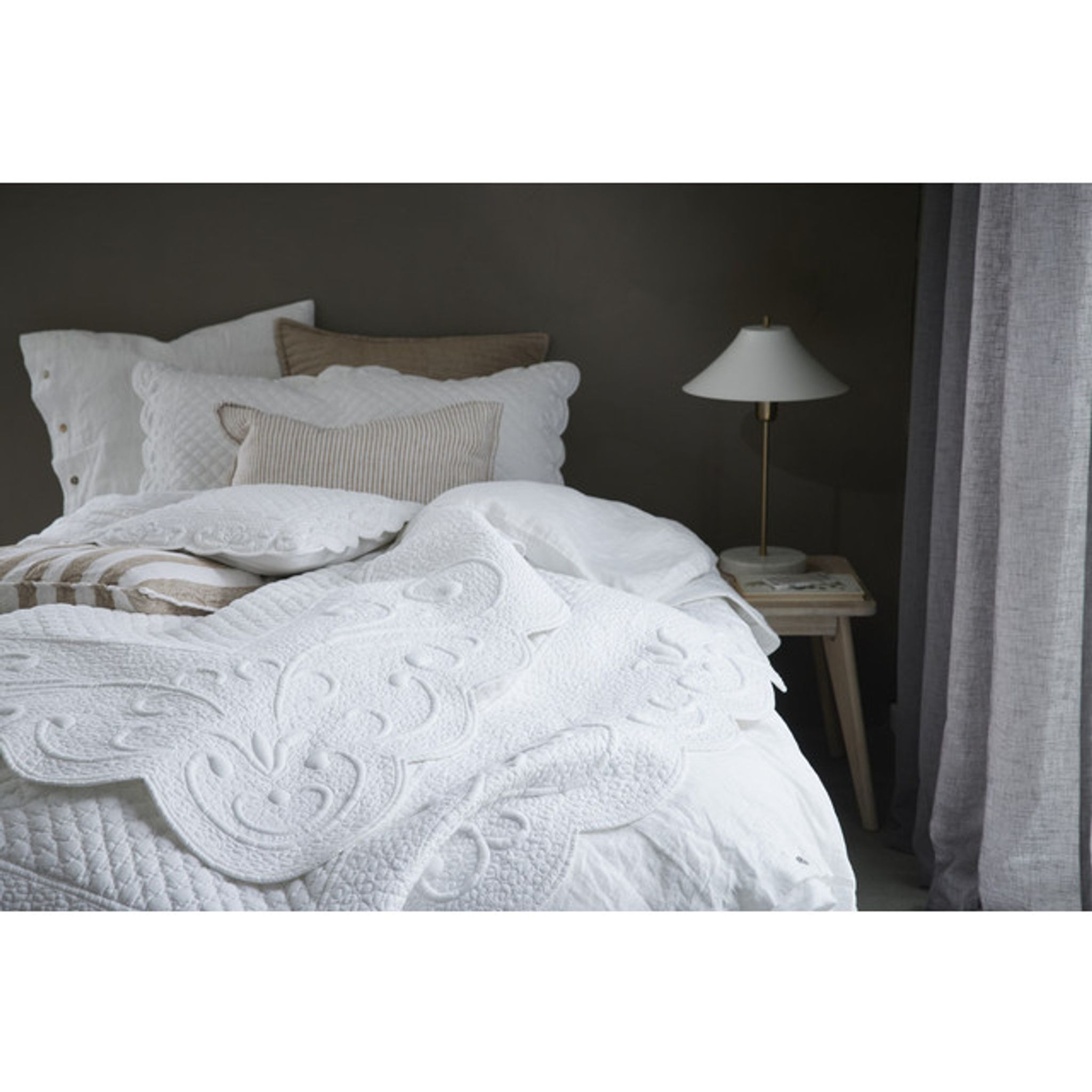 - Linne i tigeröga: Ett mjukt linne som bidrar till en varm känsla i rummet.