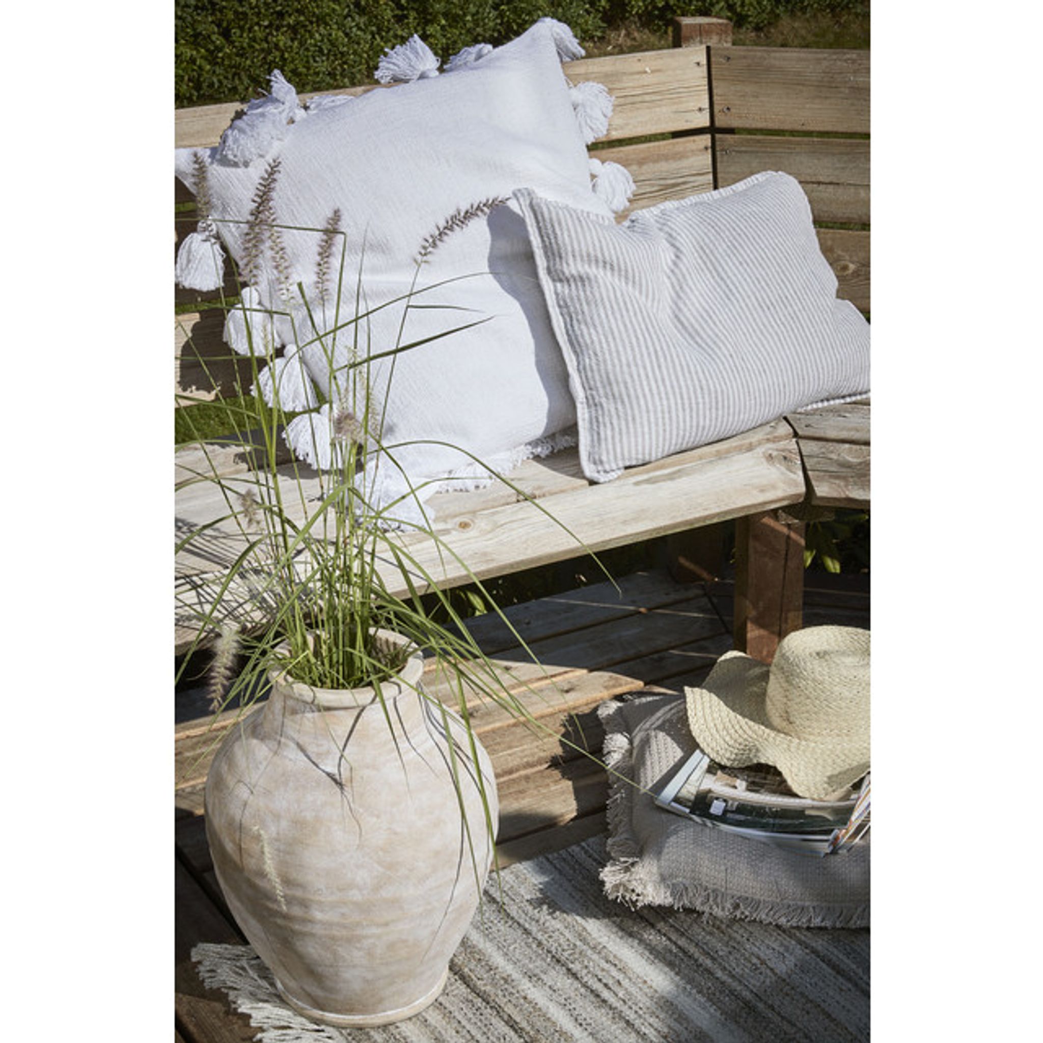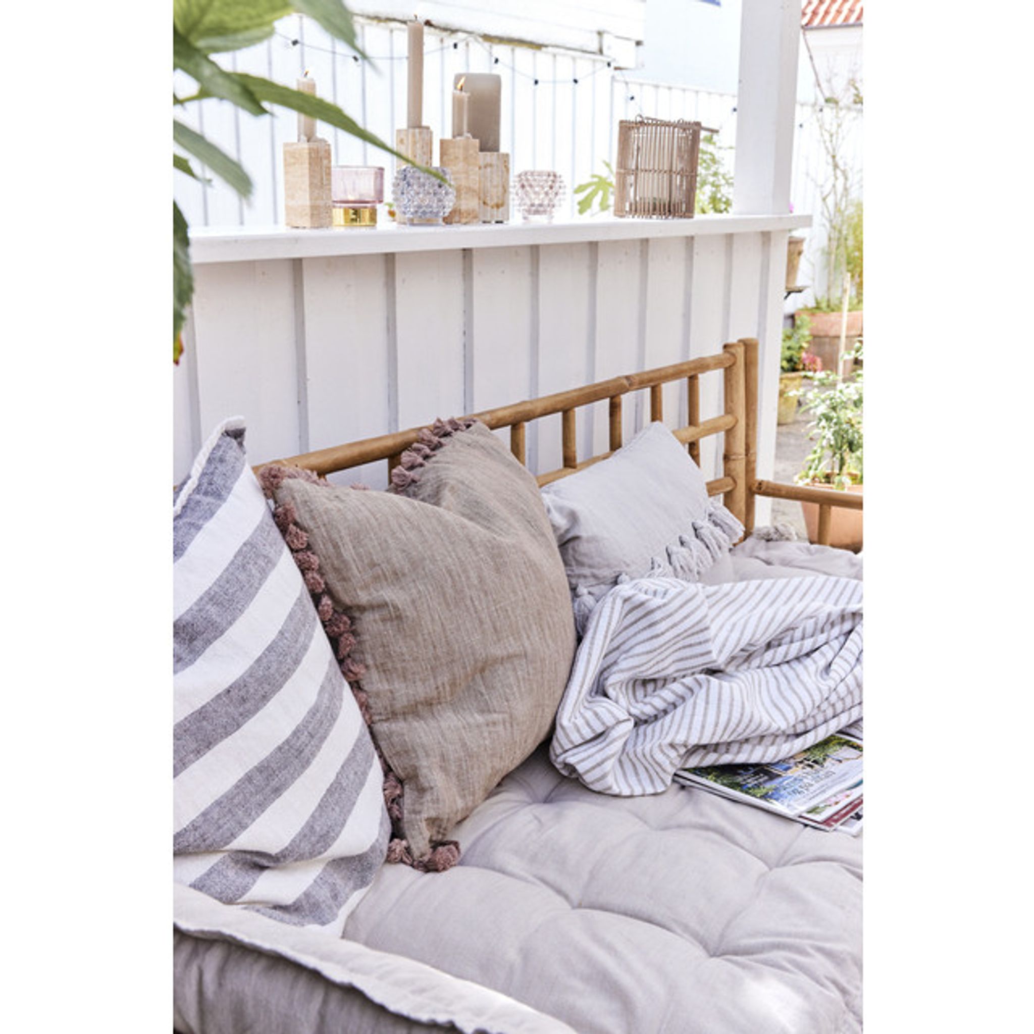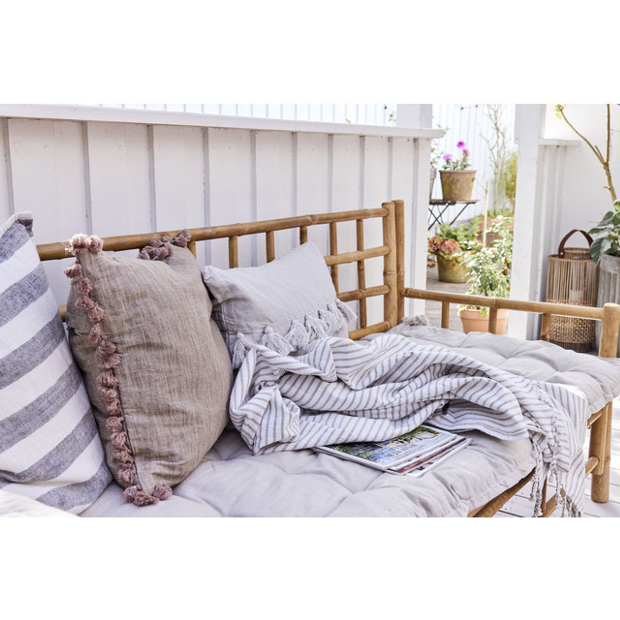 Oville Linen Cushion är en handgjord linnekudde med dekorativa tasslar som passar i vardagsrummet eller på sängen. Den ger både extra sittkomfort och en omedelbar stilförbättring i din soffa eller säng, samtidigt som varje kudde blir unik.