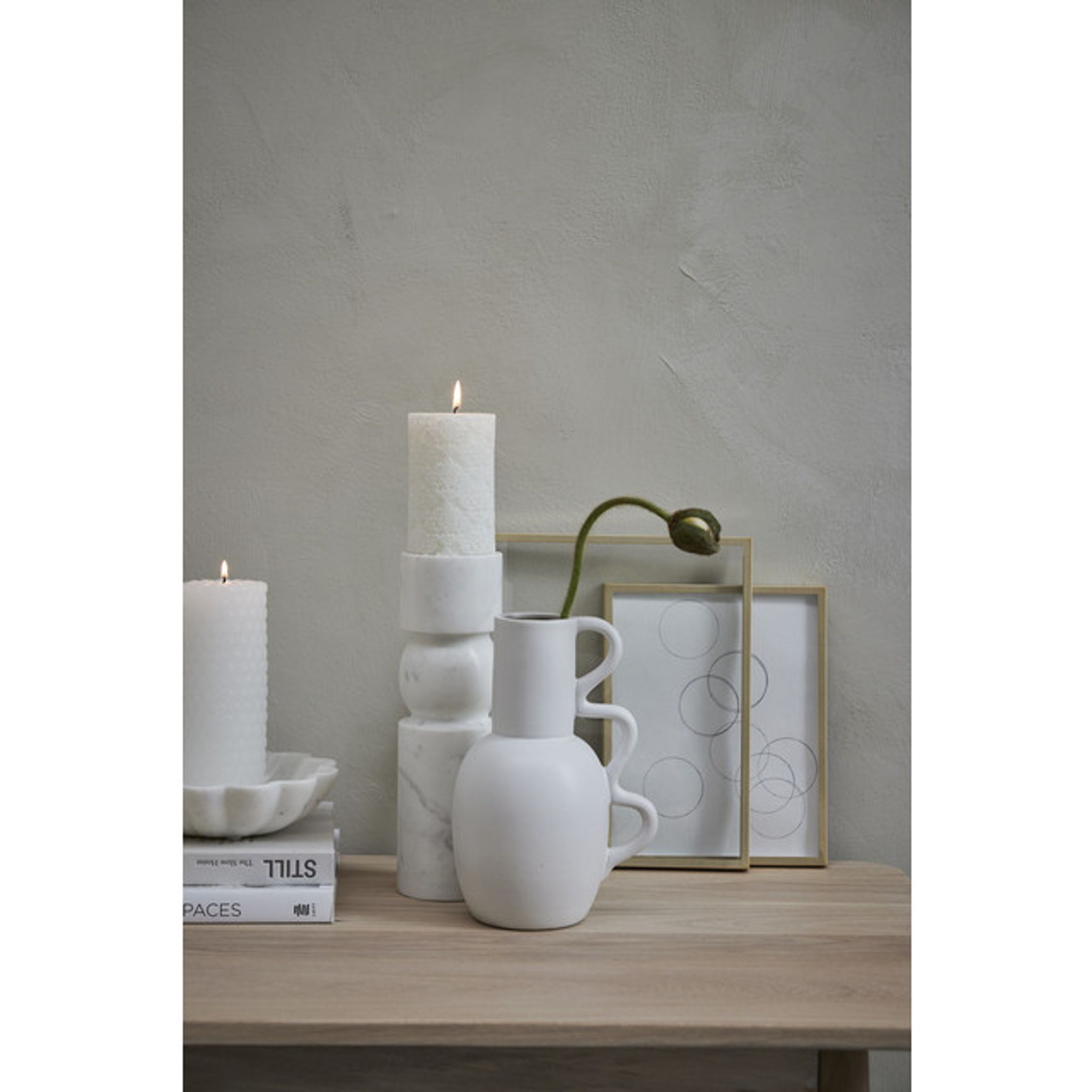 Lene Bjerre Ellia Ljusstake Vit Marmor H30 cm