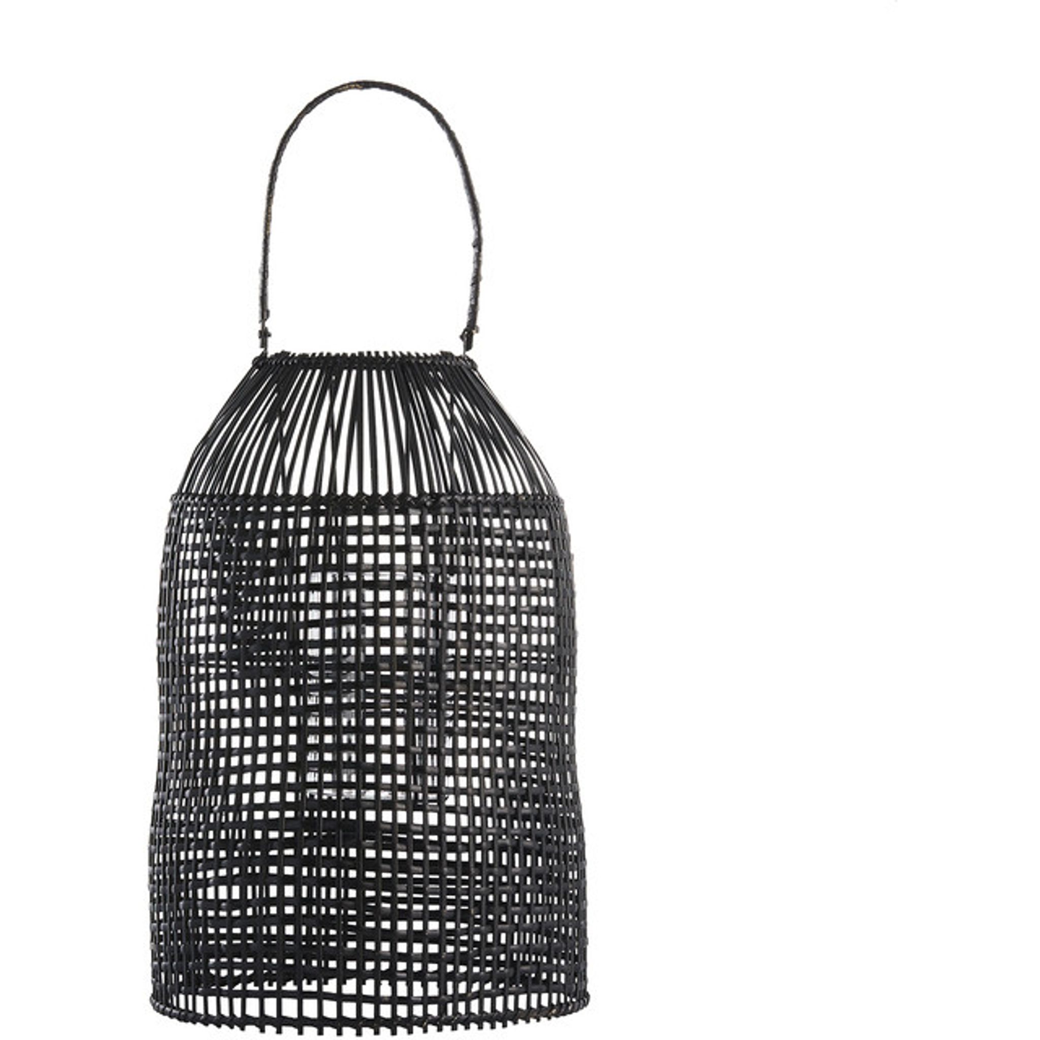 Hazel lykta i svart rotting, H45 cm, Ø30 cm från Lene Bjerre. Din snygga, praktiska rottinglykta passar i hemmet, funkar bra som ljushållare och håller länge.