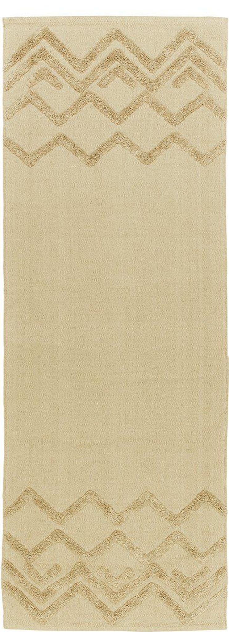 Upptäck den eleganta och stilrena garnmattan i bomull som förvandlar ditt hem. Med sitt tuftade reliefmönster och en perfekt storlek på 70x140 cm, blir den en vacker detalj i vilket rum som helst. För extra säkerhet rekommenderar vi att använda halkskydd, vilket gör att mattan ligger stabilt på golvet och minskar risken för halkolyckor.