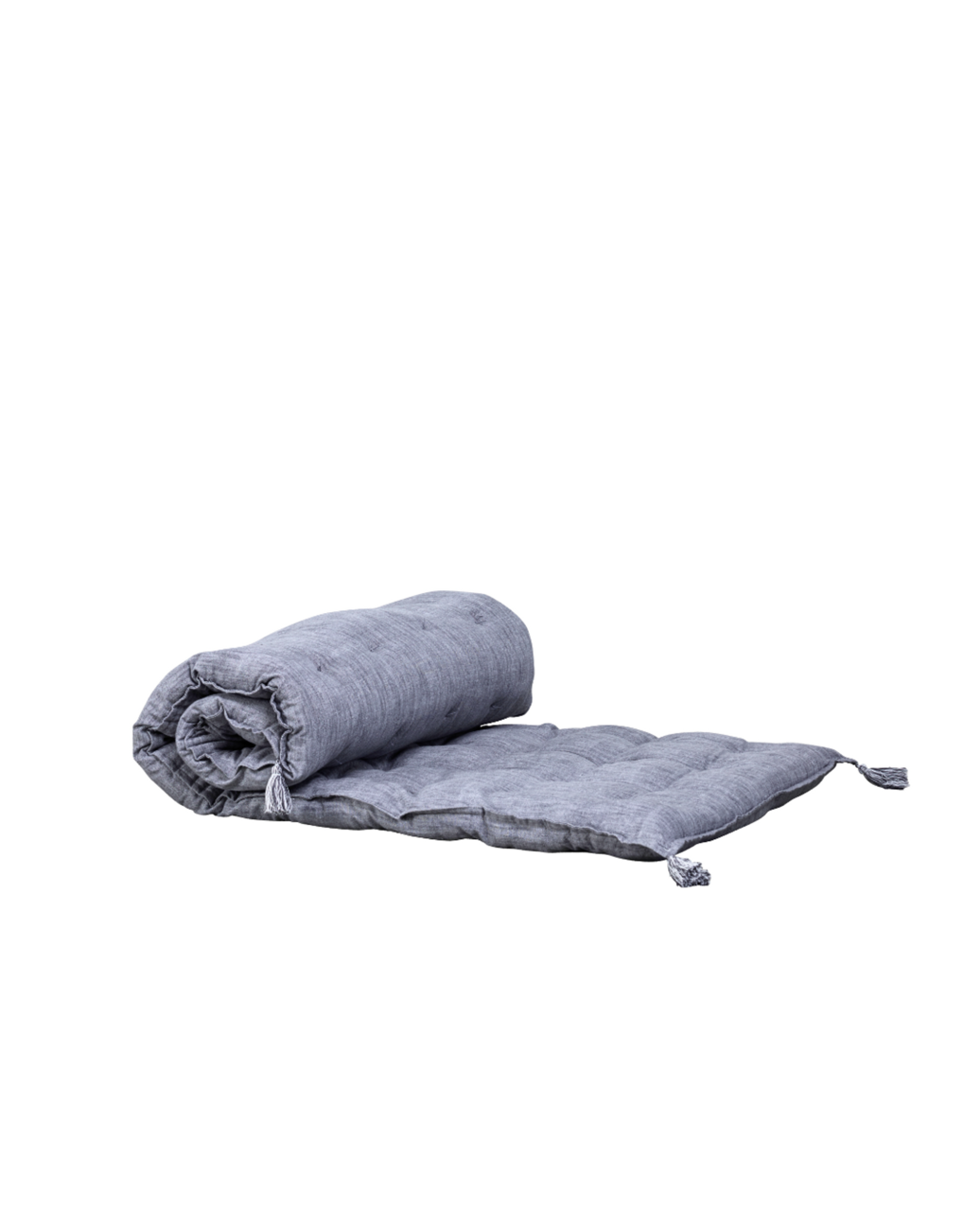 Den här mörkgrå bomullsmadrassen ger en bekväm yta för avslappning och lek. Tack vare den handgjorda konstruktionen får varje madrass sitt eget uttryck — små skillnader kan förekomma. Du får en flexibel lösning som ger extra sittplats, en trygg lekmatta för barn eller en enkel gästmadrass när det behövs.