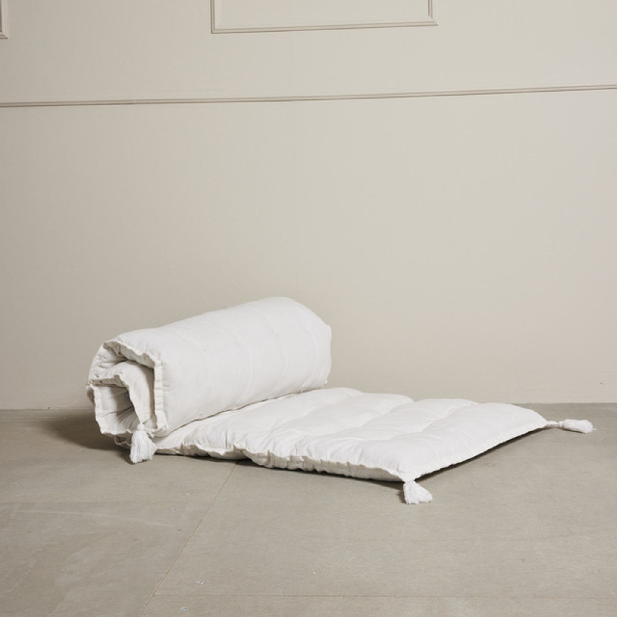 Praktiskt i vardagen: du kan rulla ihop madrassen för förvaring vilket gör den lämpad för mindre lägenheter. Som lekmatta ger den en skyddande, bekväm yta för barnens lekar och tupplurar.
