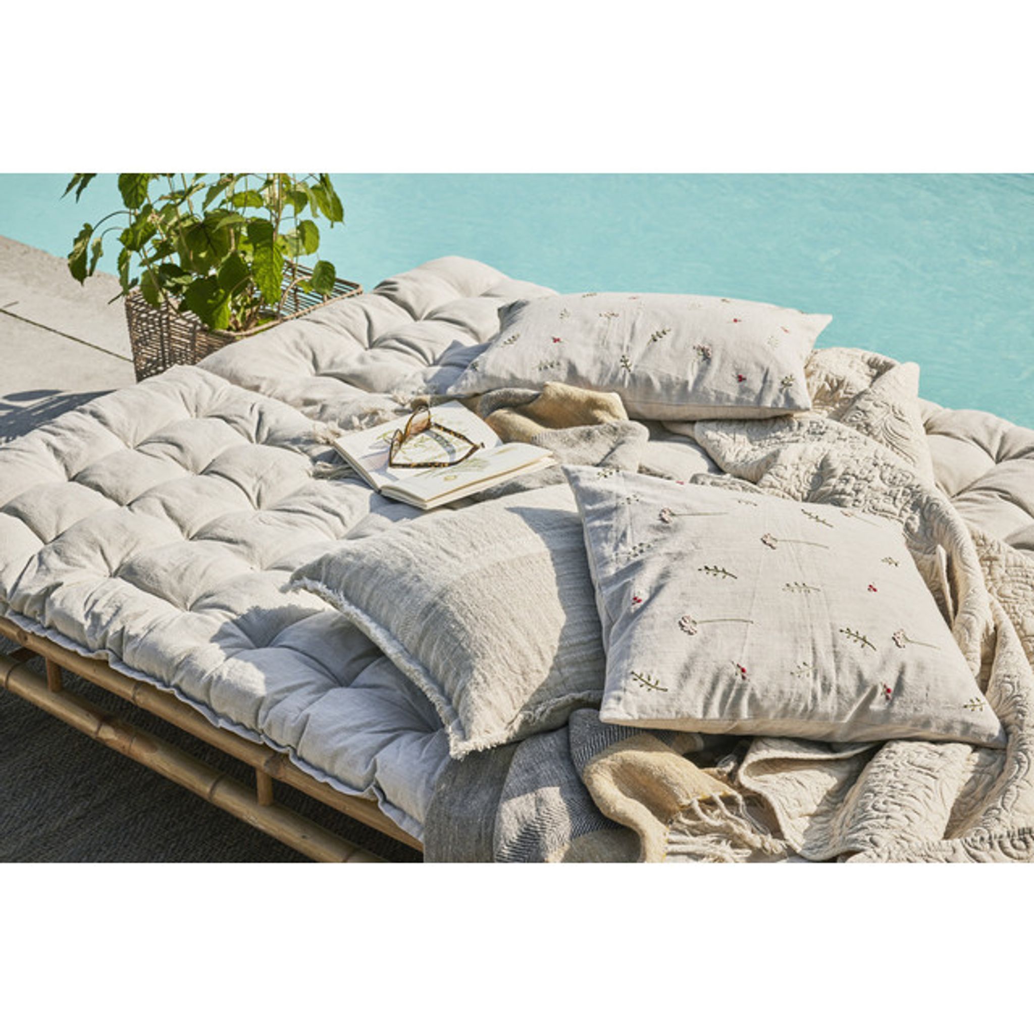 Handgjord bomullsmadrass från Lene Bjerre (Felima) — en mångsidig lekmatta och dyna som passar i barnrummet, vardagsrummet eller där barnen leker. Den fungerar både som lekmatta och som extra sittdyna när du behöver en mjuk yta för lek och vila.