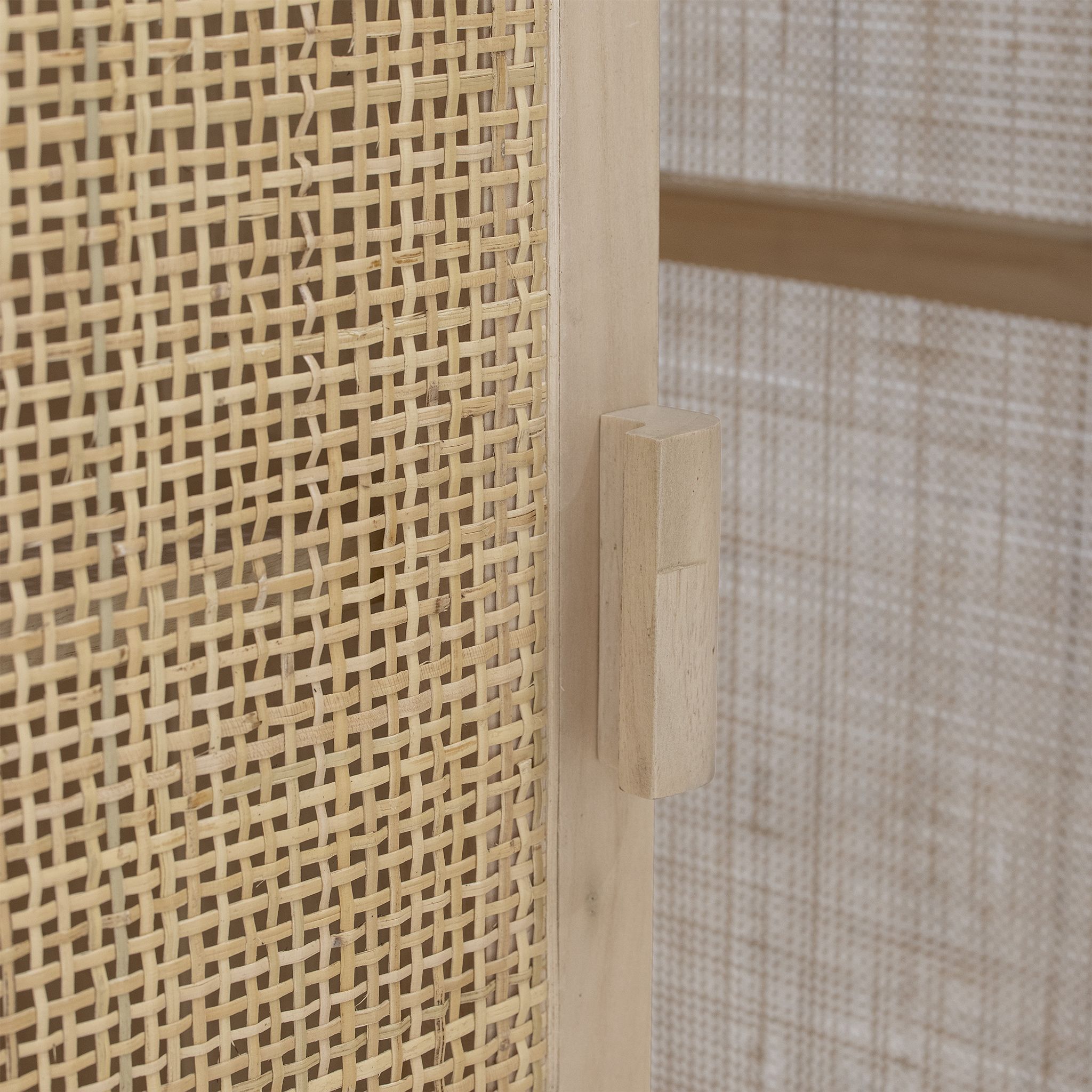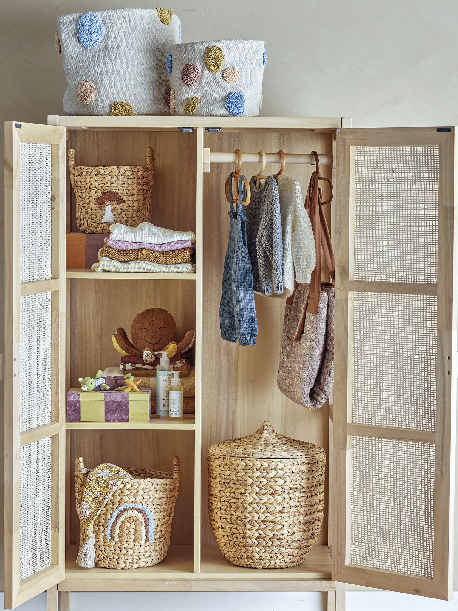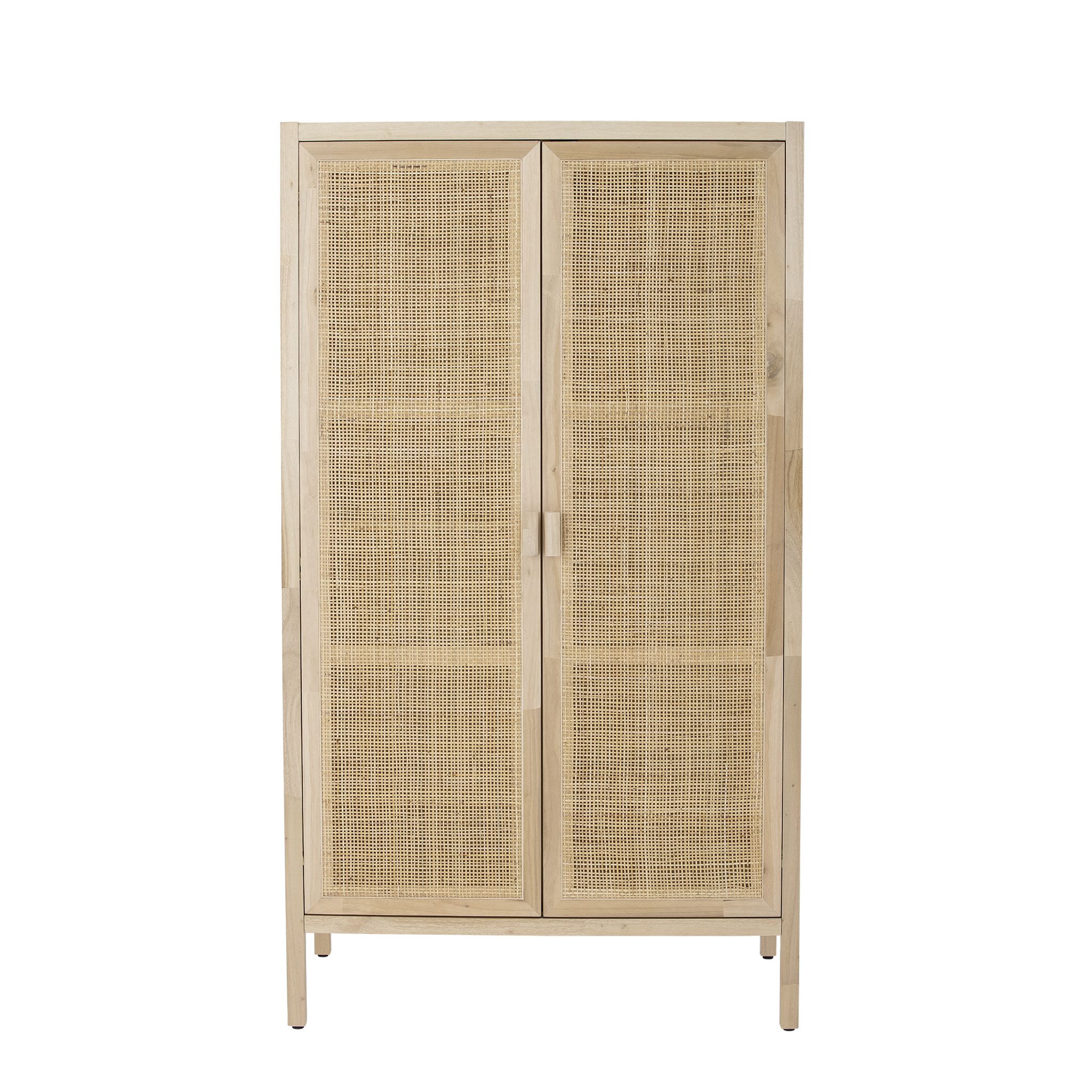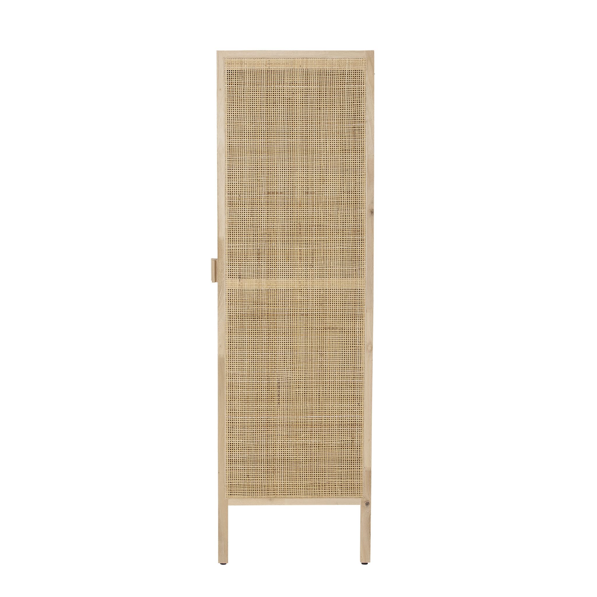 Marikka-skåpet från Bloomingville är ett högt skåp i nordisk stil som passar i vardagsrum, sovrum eller hall. Med semitransparenta rattandörrar och ljus, FSC‑certifierad tall ger det både förvaring och ett luftigt intryck som mjukar upp rummet.