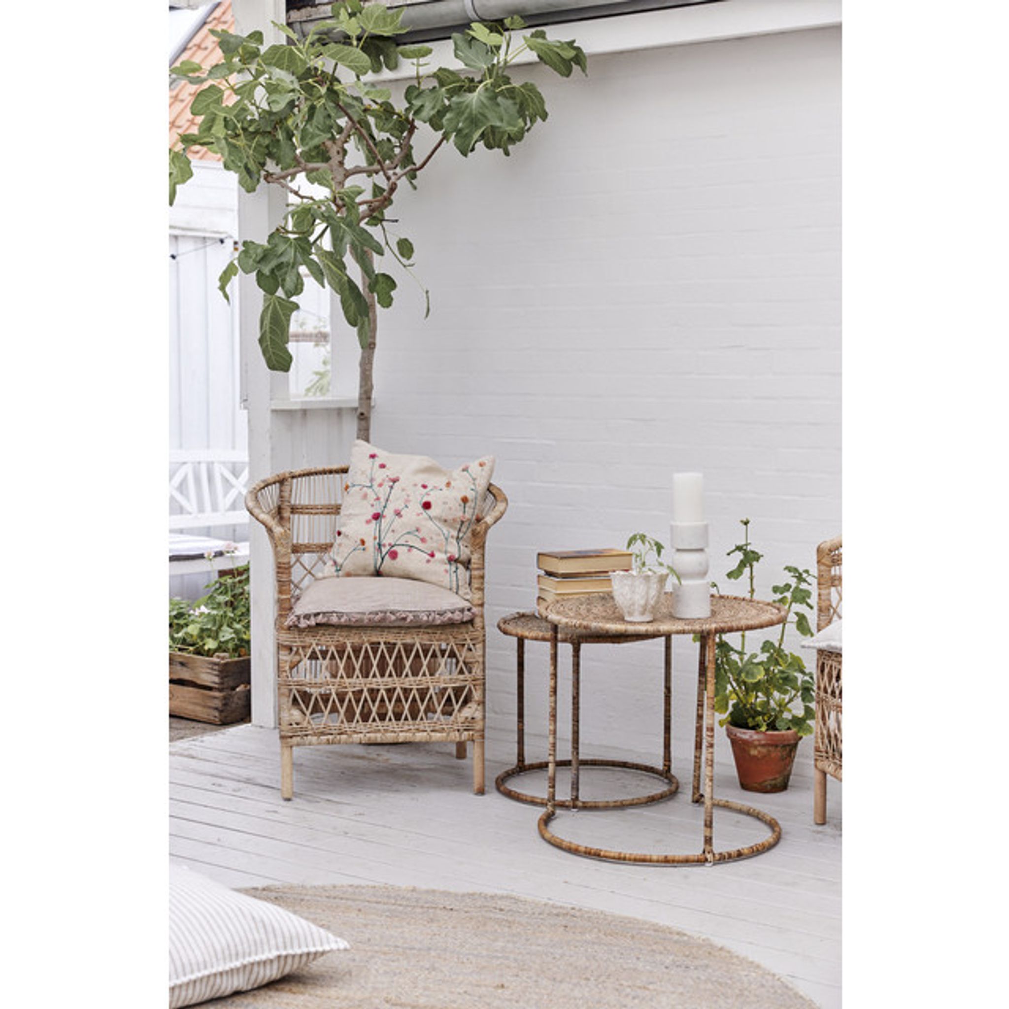 Norah Matstol från Lene Bjerre är en handflätad rottingstol för din matplats. Den passar i köket eller vid matbordet när du vill ha en naturlig, varm känsla och en bekväm stol för middagar eller längre sittningar.