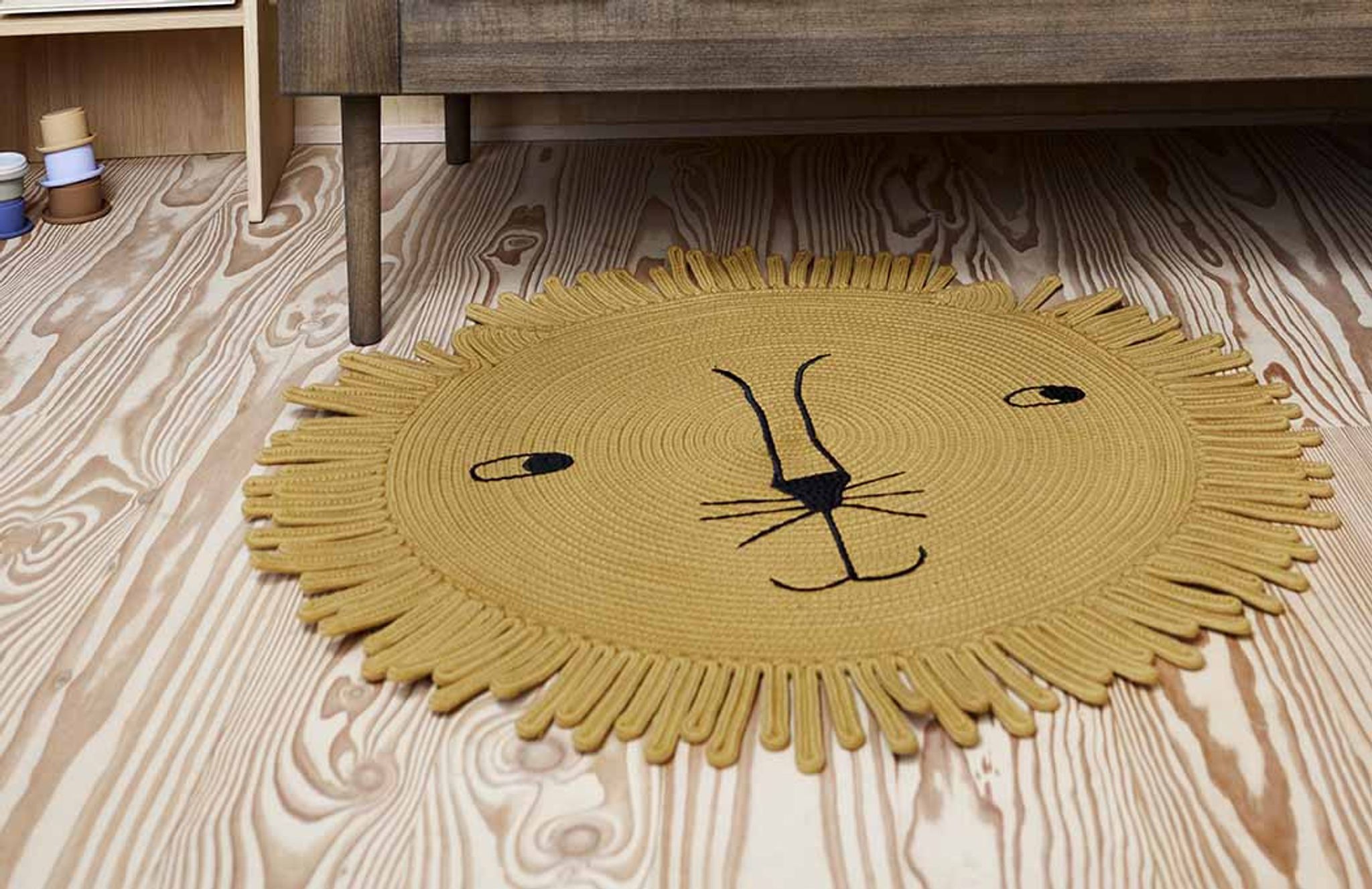 Mara Lejonmatta Kamel 93 cm i bomull från Oyoy Mini. Passar i ditt barnrum som en snygg och praktisk barnmatta som funkar bra och håller länge; dammsug och punktstvätta.