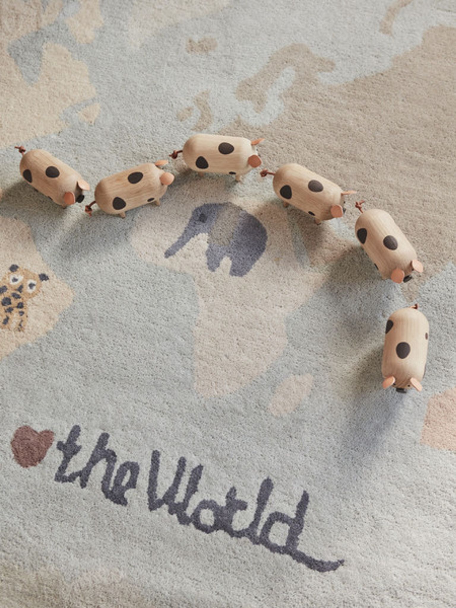 The World tuftad matta 120×120 cm i 80% ull och 20% bomull från Oyoy Mini. En snygg och praktisk barnmatta som passar i ditt barnrum, funkar som lekyta, håller länge och är bra.