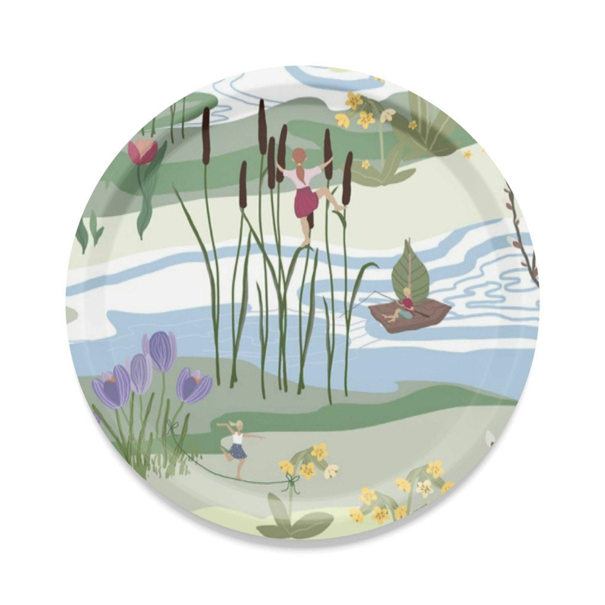 Upptäck den vackra rund brickan "Naturens Lycka" från Arvidssons Textil, designad av Louise Videlyck. Denna eleganta bricka är tillverkad av högkvalitativ björkfanér och pryds av en färgglad och inspirerande naturmotiv som för in en känsla av lugn och harmoni i ditt hem.