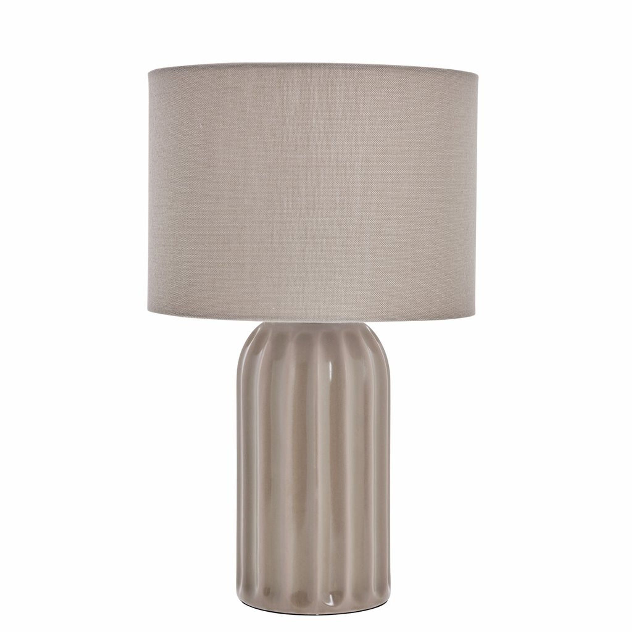 Basen är glaserad keramik med tydlig räffeldetalj och skärmen sprider ljuset mjukt. Lampans mått är L25xW25xH41.5 cm, kompakt nog för mindre ytor utan att ta över. Den fungerar både som funktionell belysning och som dekorativ bordslampa som är lätt att matcha med din inredning.