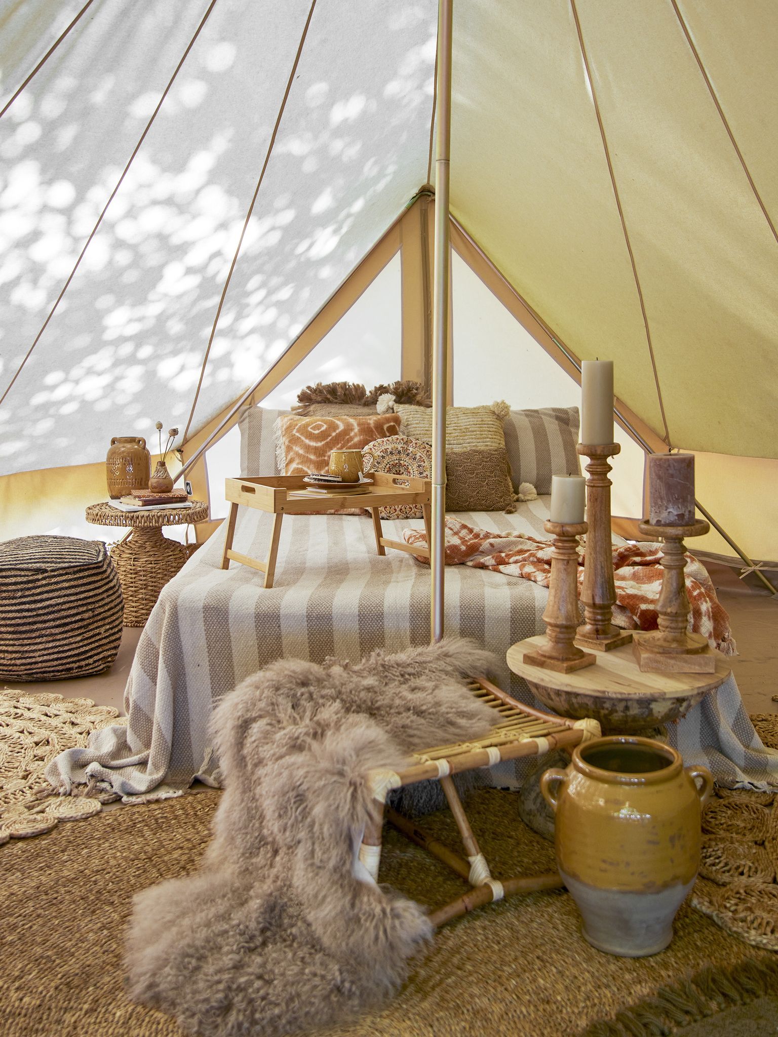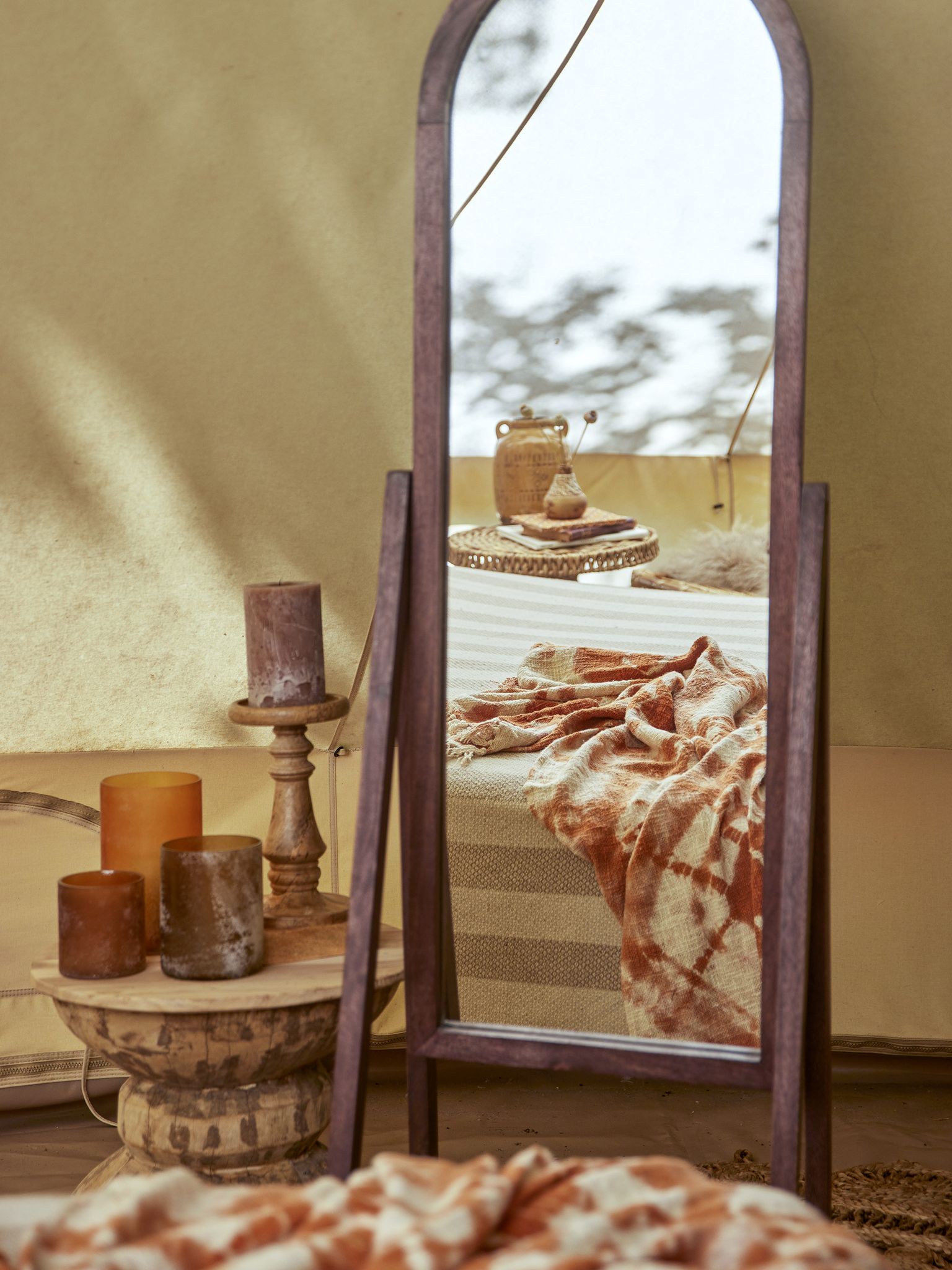 Den handhuggna formen och de naturliga färgvariationerna visar hantverket och ger varje piedestal ett personligt uttryck. Du kan använda den för att framhäva dina favoritljus eller buketter och snabbt förändra stämningen i rummet.