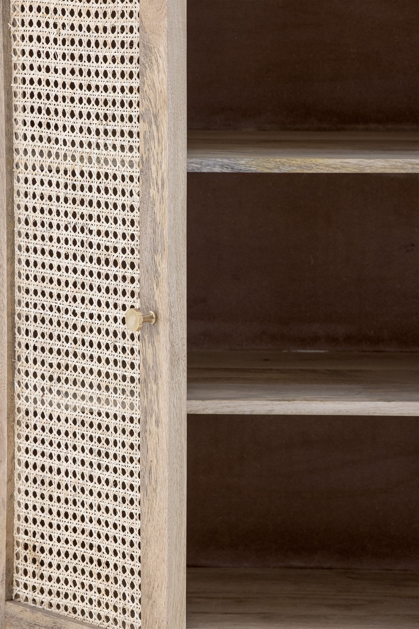 Skåpet kombinerar hållbarhet och enkel design, så du får både förvaring och en möbel som gör rummet mer ombonat. Rottingdörrarna skapar visuellt intresse samtidigt som de underlättar luftcirkulation, vilket är praktiskt för olika typer av saker du vill förvara.