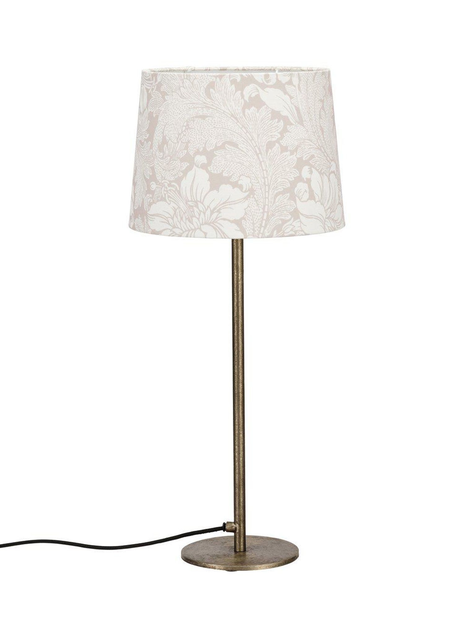 Beige Acanthus bordslampan från Borås Tapeter är en bordslampa med lampskärm som ger ett mysigt och riktat ljus. Den passar bra på sängbord, sidobord eller arbetsbord i vardagsrum, sovrum eller kontor och lyfter din inredning med sitt blommönster utan att ta över.