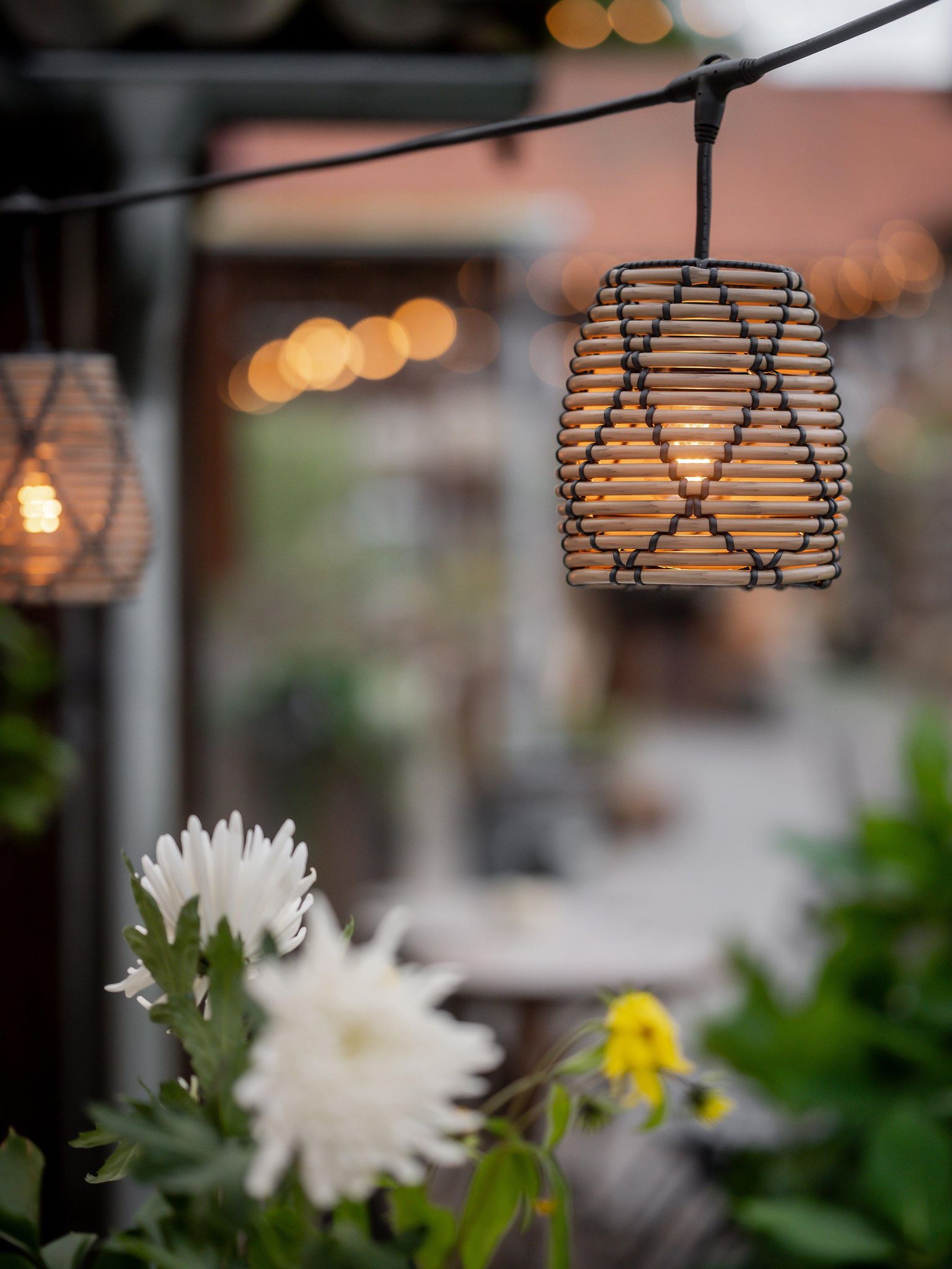 Slingan har en total längd på 6,5 m och är IP44-klassad vilket gör att du kan använda den i varierande väder. E27-hållarna ger dig flexibilitet att välja lampor efter önskad ljusstyrka. De flätade Lollo-skärmarna är gjorda för utomhusbruk och klarar av normala väderförhållanden.