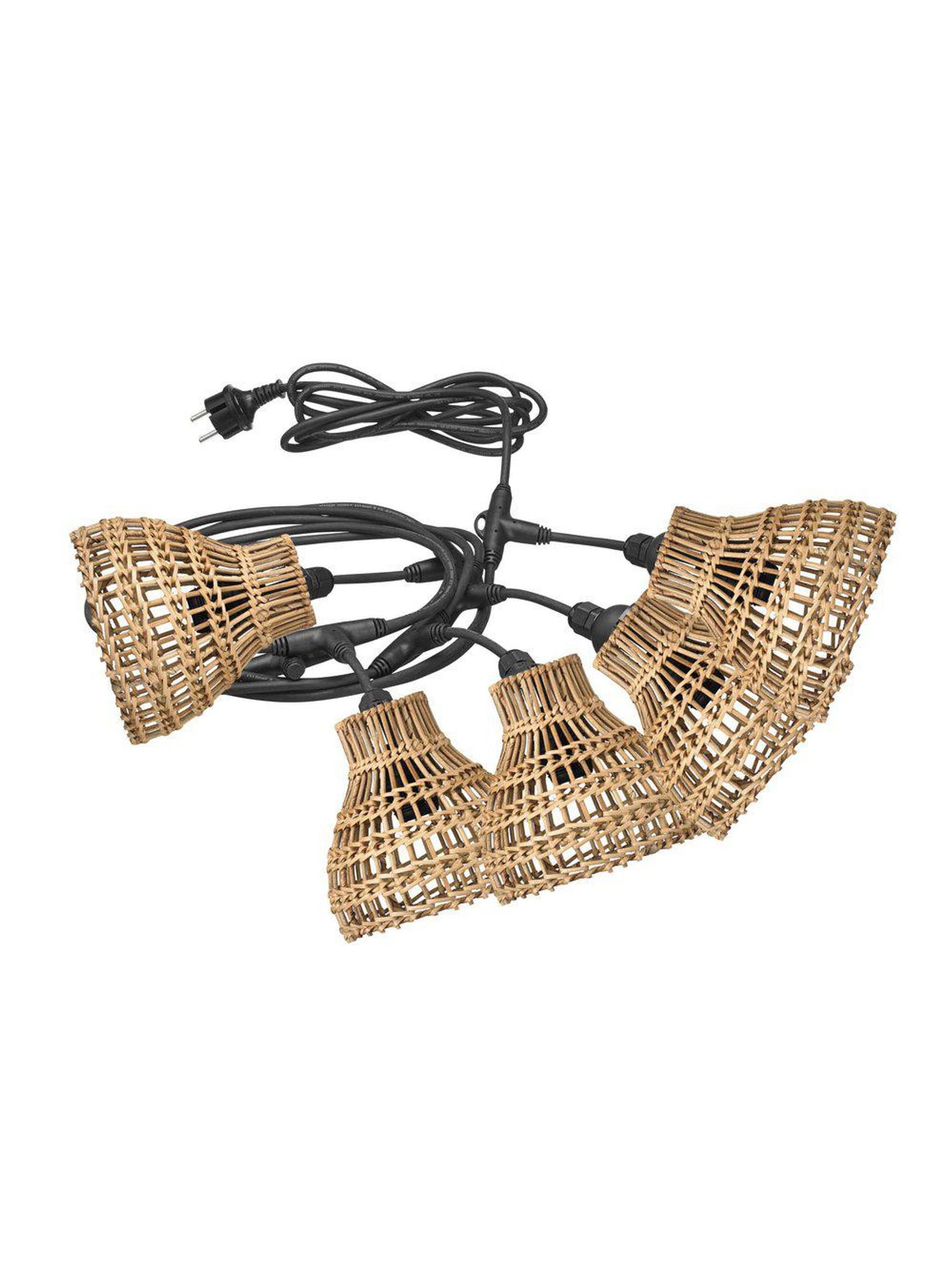 Flex Out ljusslinga Sarah kombinerar funktion och design för utomhusbelysning. De fem lamphållarna gör det enkelt att anpassa ljussättningen efter olika tillfällen, och den långa kabeln ger flexibilitet när du planerar placering på din uteplats eller i trädgården.