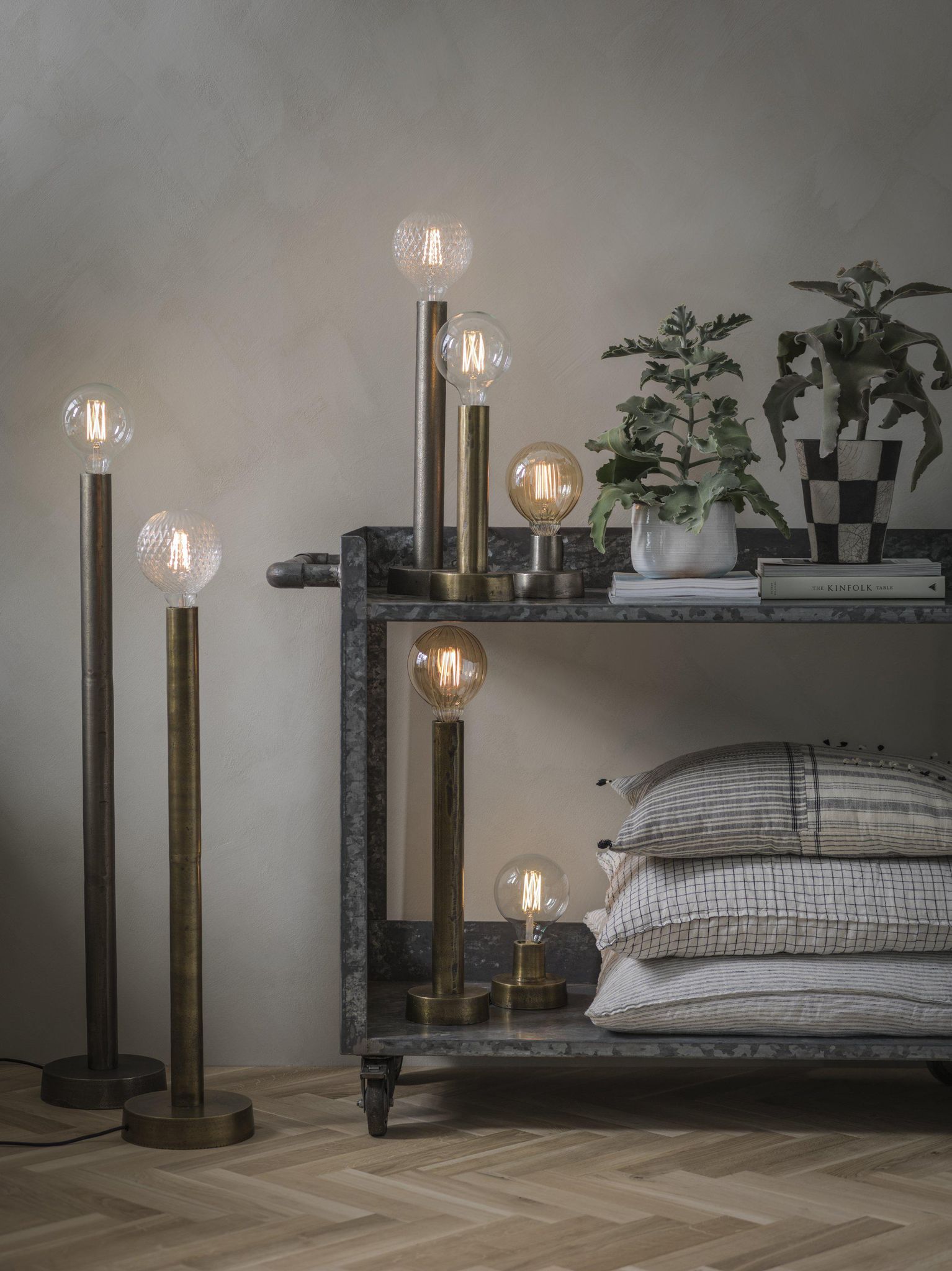 Notice bord/golv Råmässing 100cm från PR Home är en metallampa med rustik mässingfinish som fungerar både som bordslampa och golvlampa. Den ger varm belysning och fungerar bra i vardagsrum, sovrum eller vid en läshörna där du vill ha ett dekorativt blickfång.