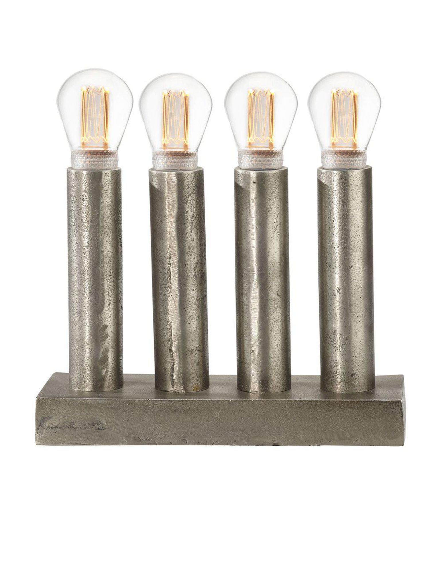 PR Home ljusstake 25 cm i råmetall med textilkabel, 4 lampor, dimmer och LED Edison i rustik silver. Passar som juldekoration inomhus och ger en snygg, praktisk belysning som håller länge i ditt hem.