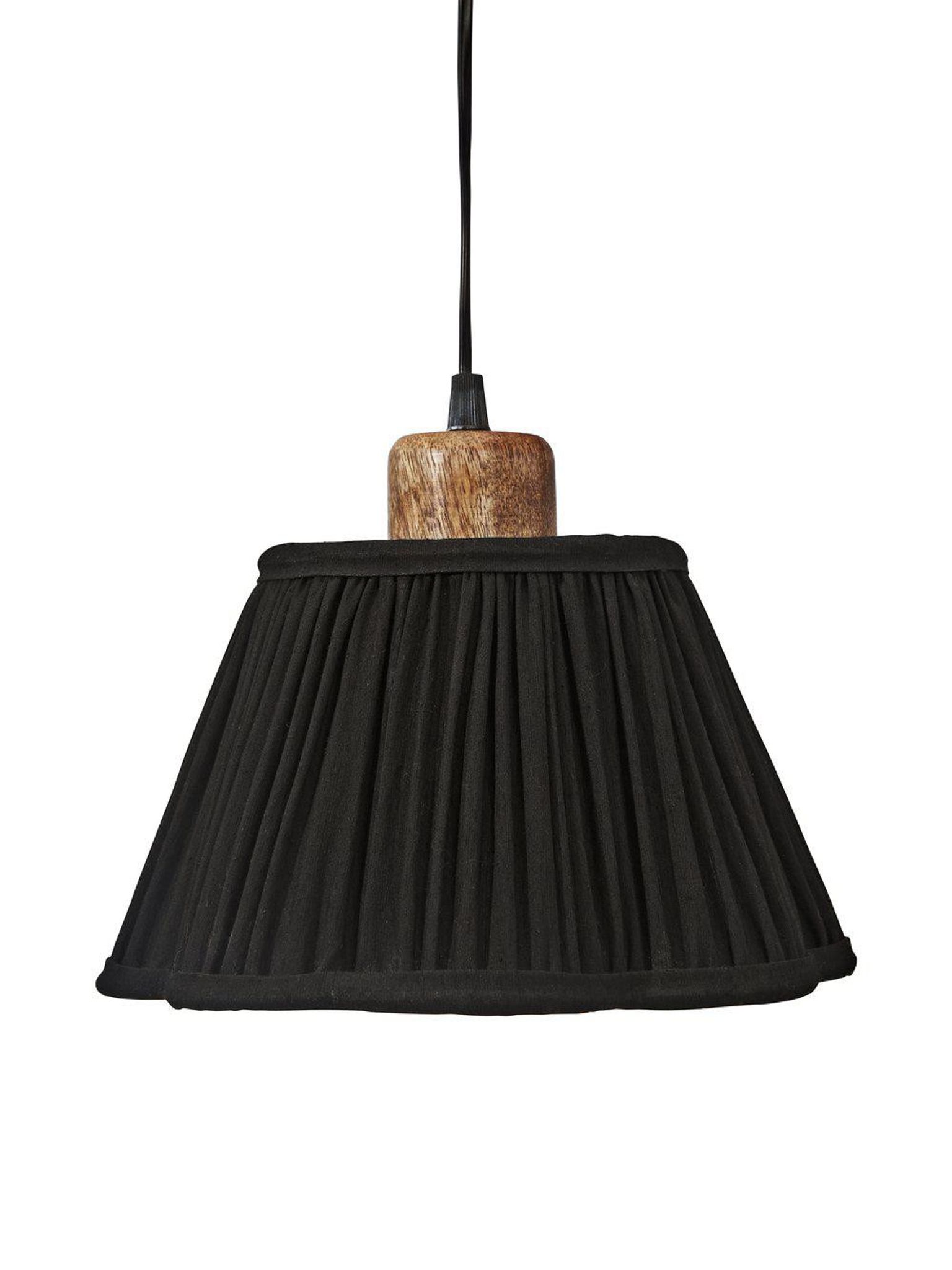 Siv taklampa 30 cm i svart sidenlook (80% viskos/15% polyester/5% siden) med mangoträ upphängning och E27-sockel. Passar din hall eller över matbord, funkar bra, är snygg, praktisk och håller länge — inte för utomhusbruk.