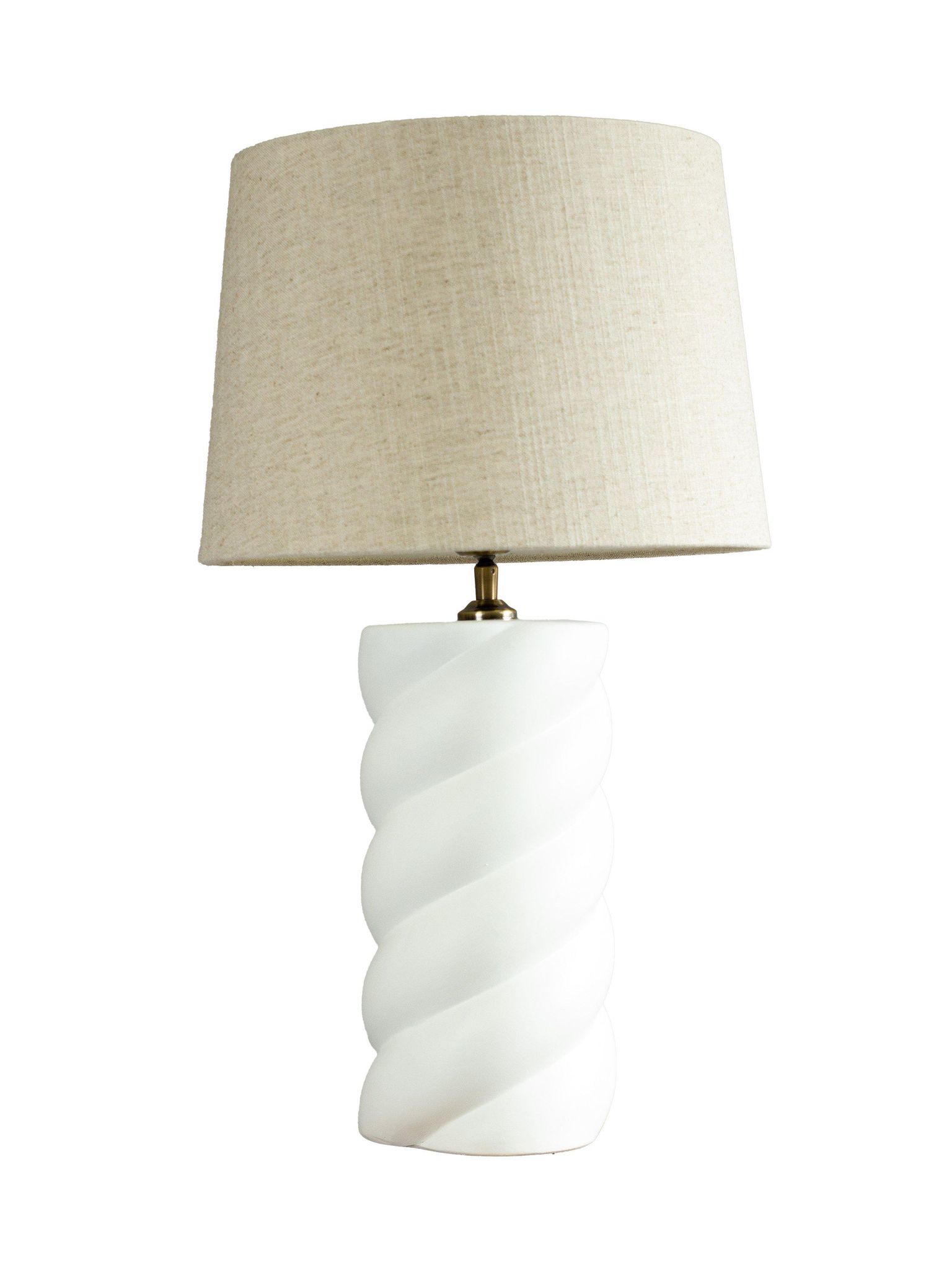 Upptäck hantverket i vår Handgjord beige Spin lampfot. Den tvinnade keramikkroppen fungerar som en bords- eller sängbordslampa med skärm och passar i vardagsrum, sovrum eller på skrivbordet när du vill skapa en varm och inbjudande stämning.