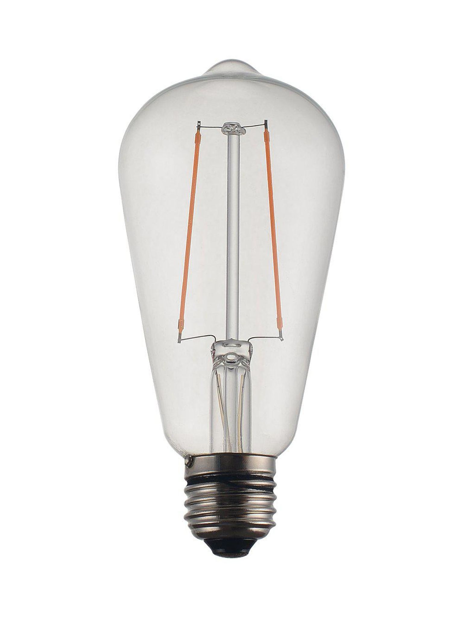 Dimbar Vintage LED filament-glödlampa E27, 58 mm i klarglas, 2W, 200 lumen, 2200K, Ra80. Passar din inomhusbelysning, funkar bra i bordslampa eller taklampa, håller länge, snygg och praktisk.