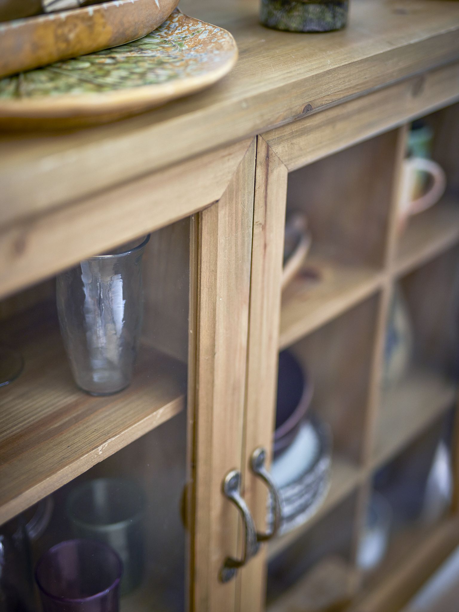 Ruthie Skåp Natur Ved 479 cm Bloomingville är ett elegant vitrinskåp i trä med glasdörrar, perfekt för förvaring och visning av dina favoritserviser.