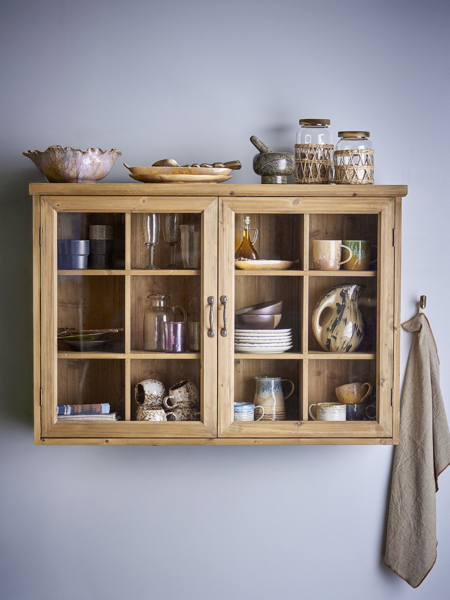 Ruthie Skåp Natur Ved 479 cm Bloomingville är ett elegant vitrinskåp i naturlig träfinish med glasdörrar. En tidlös möbel som kombinerar varmt trä med praktisk förvaring och visning av dina favoritserviser.