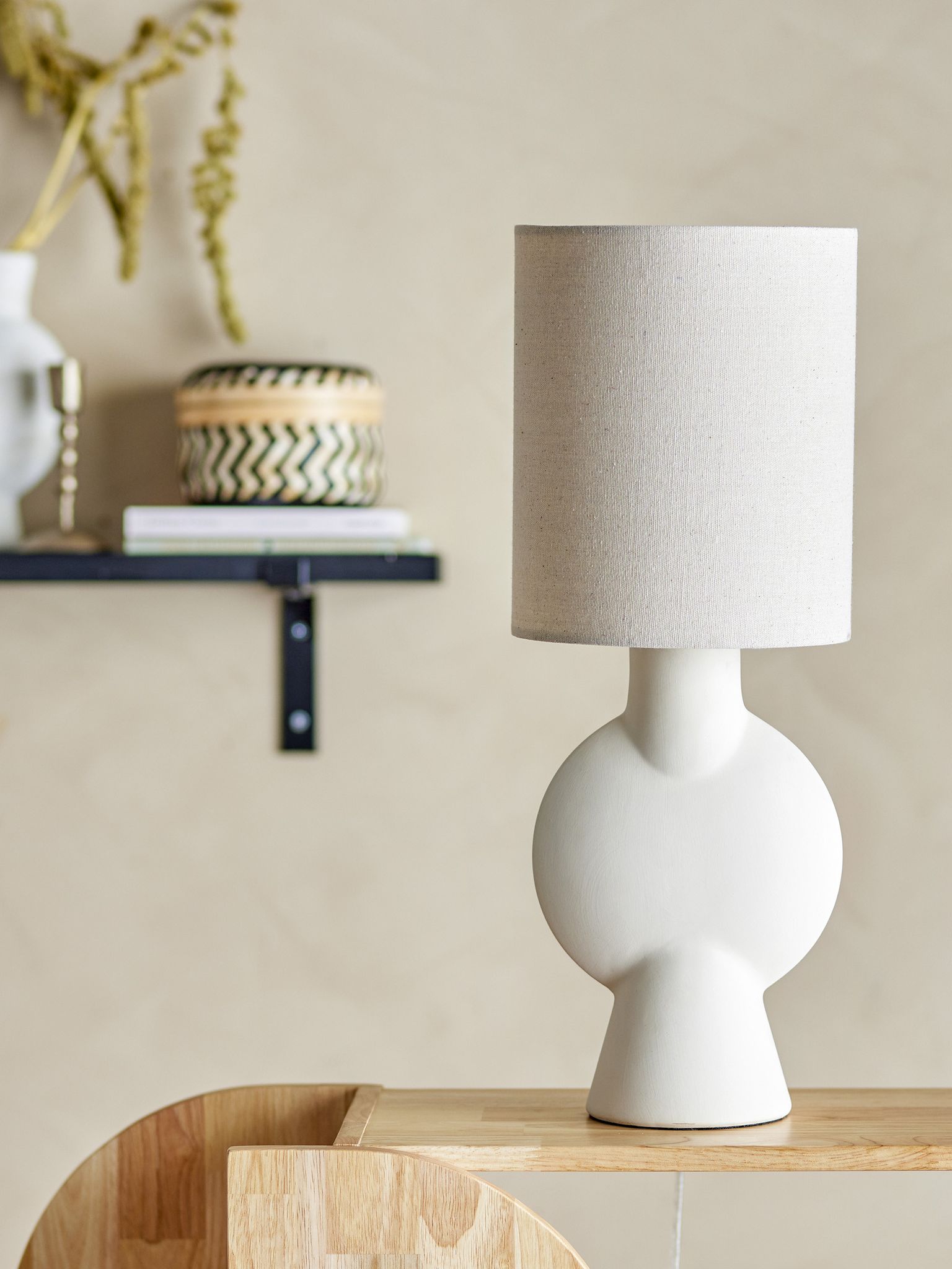 Sergio bordslampa från Bloomingville är en stilren bordslampa i stengods med linne-skärm. Den passar bra på sängbord, sidobord eller skrivbord när du vill ha mjuk inomhusbelysning för läsning eller som stämningsbelysning i vardagsrum eller sovrum.