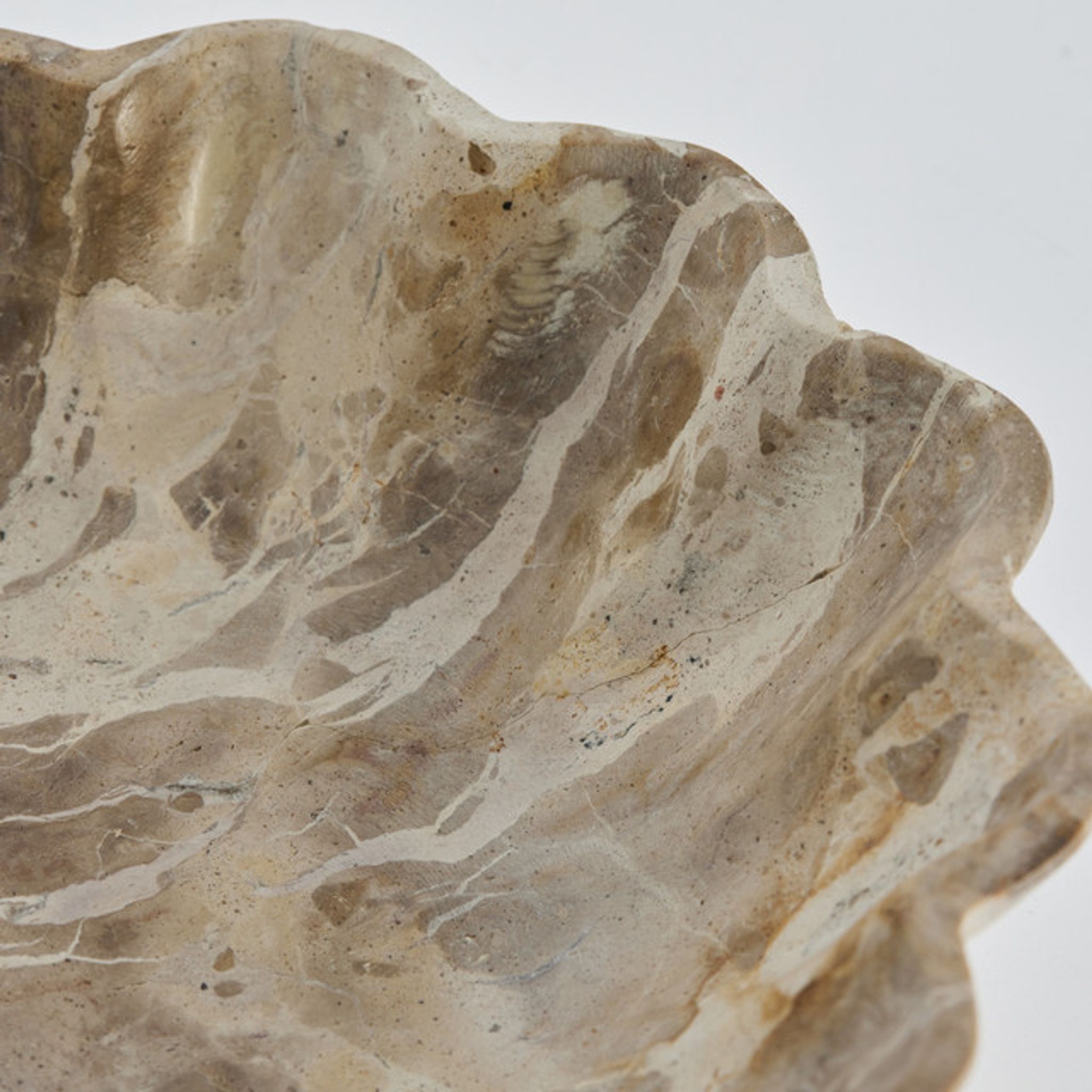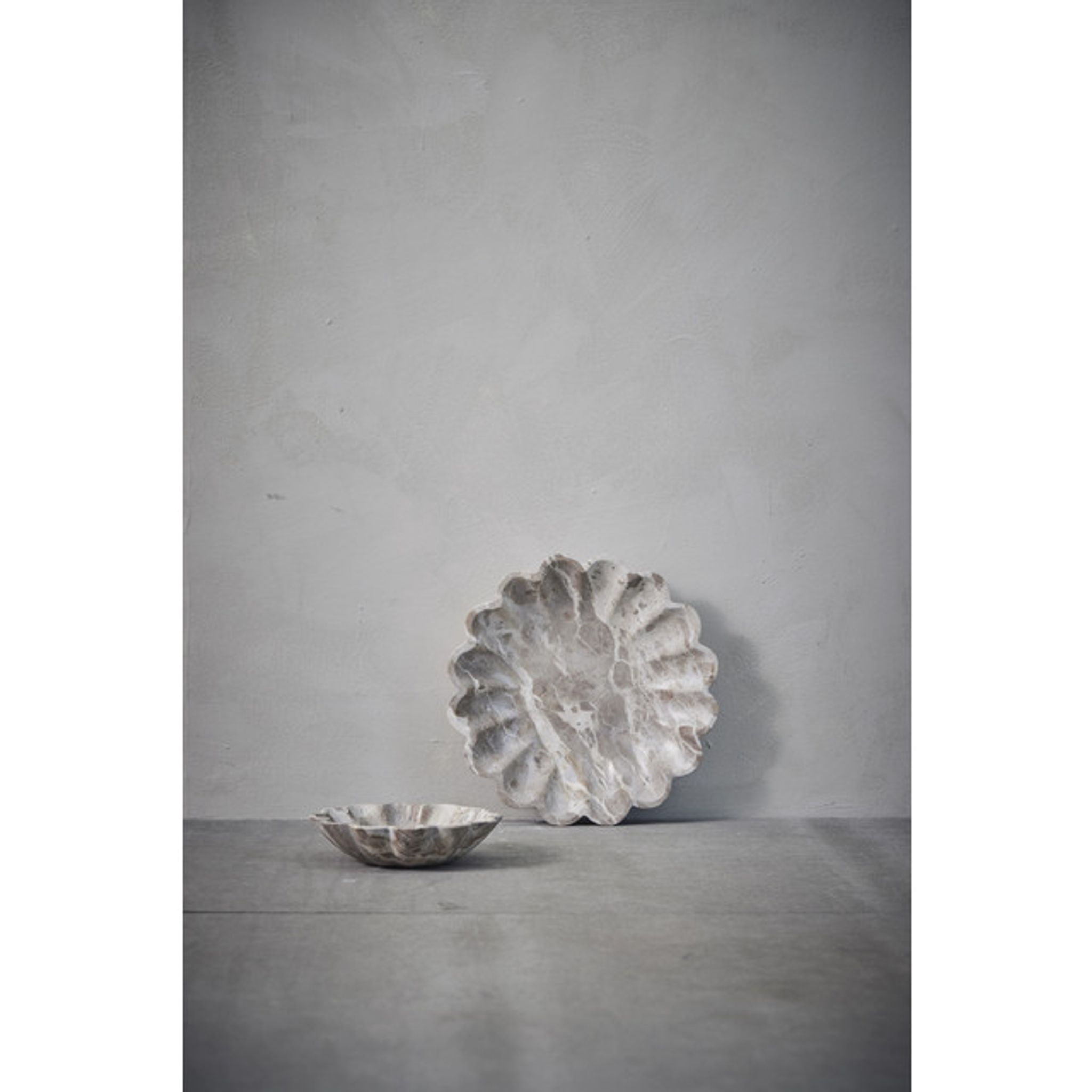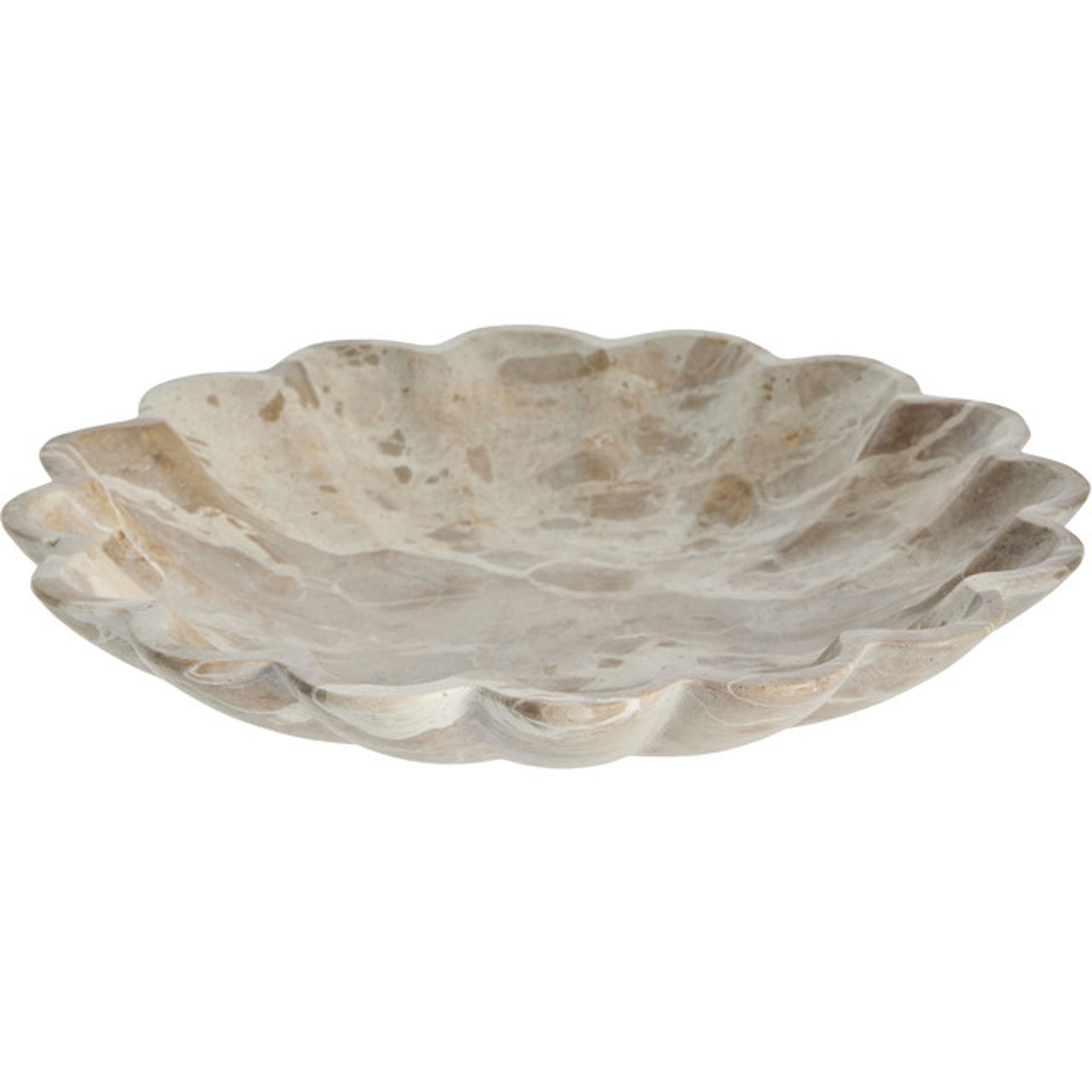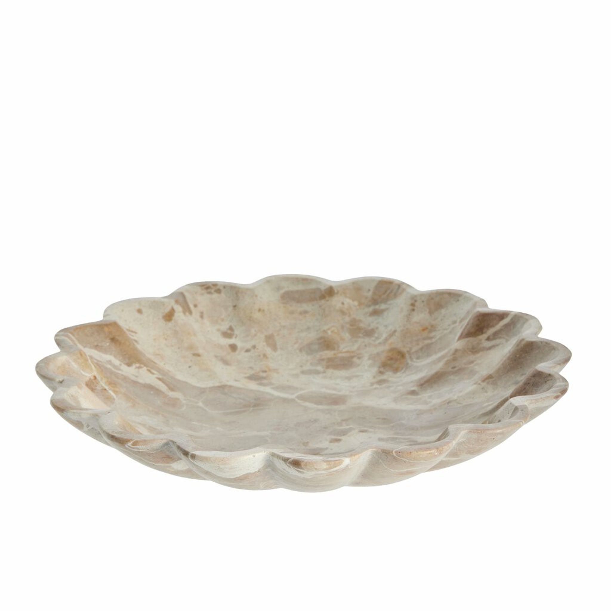 En serveringsskål i marmor (Ø30 cm) som fungerar lika bra som serveringsfat till frukt och snacks som som dekorativ skål på köksbänken eller soffbordet. Den täta ytan och den naturliga färgen i linne gör att skålen passar in i både kök och vardagsrum och ger en genomtänkt känsla i din inredning.