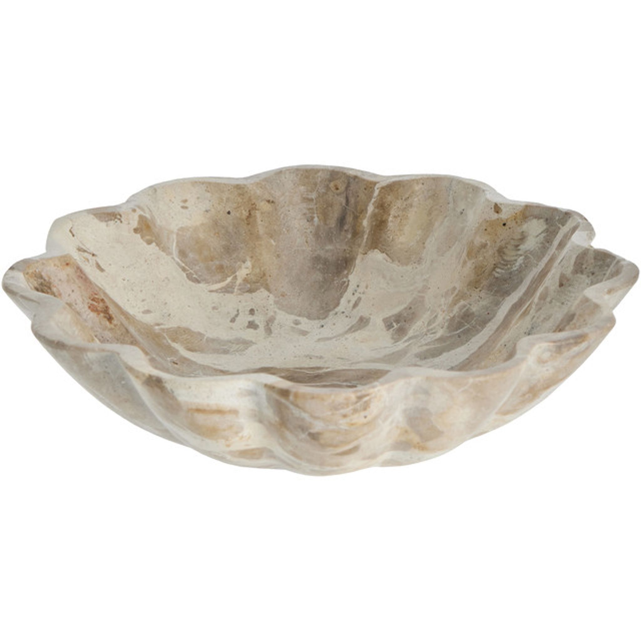 Hantverket syns – skålen är sågad och formad för hand och polerad på ytorna. Materialet i solid marmor ger både tyngd och hållbarhet, samtidigt som den tillför en naturnära detalj i hemmet. Du får en stabil serveringsskål Ø20 cm som fungerar i vardagen för att servera snacks eller som en snygg förvaringslösning för småsaker.