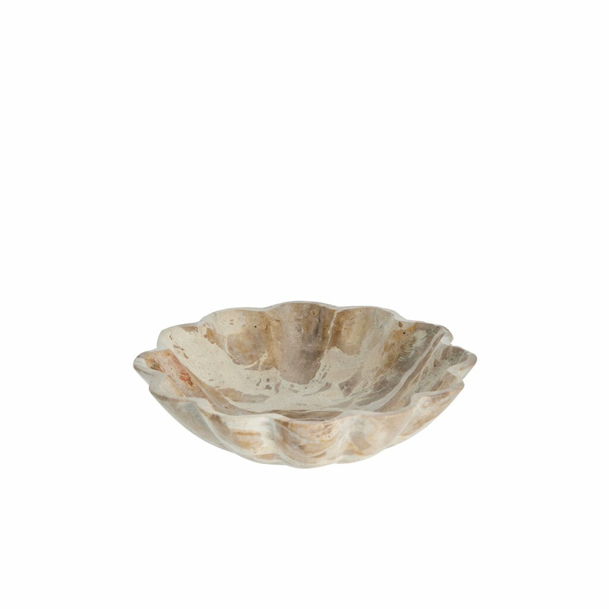 Handgjord marmorskål från Lene Bjerre, Ellia-serien. Skålen är gjord i hel marmor och varje exemplar har unika mönster i ljus till mörkbruna toner, så du får aldrig två som ser likadana ut. Den passar lika bra på soffbordet eller matbordet som serveringsskål för snacks eller som en praktisk plats för småsaker i köket.