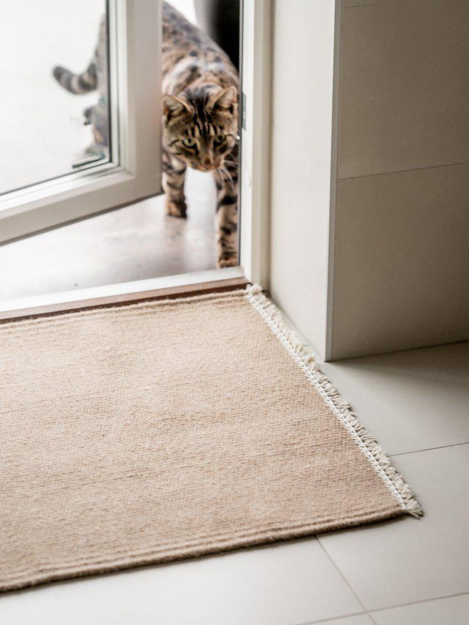 John ullmatta 70x200 cm i beige, slätvävd vändbar ullmatta med bomullsvarp och kort frans. Snygg och praktisk matta som passar din hall eller under sängen, funkar bra och håller länge.