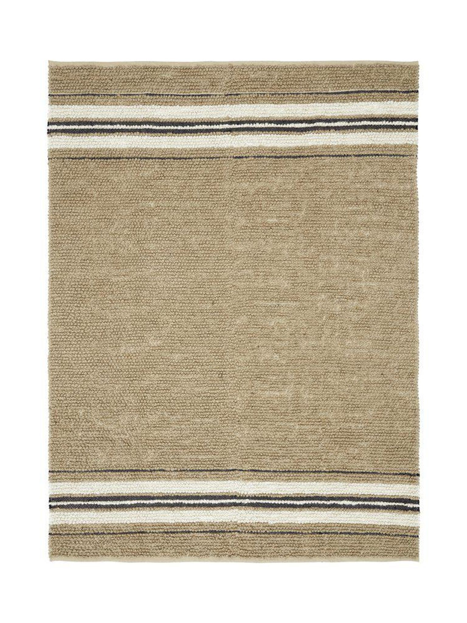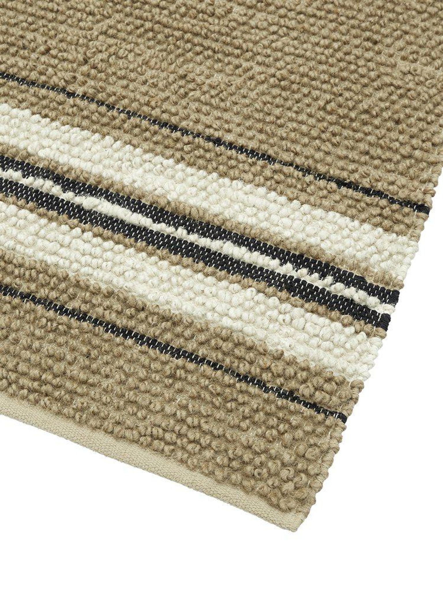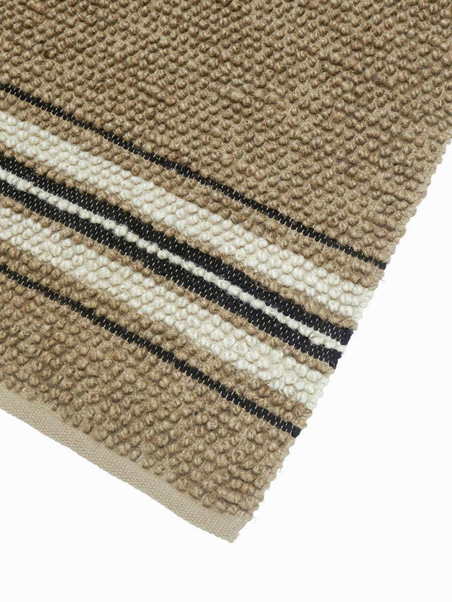 Mattan är gjord för att vara användbar och hålla länge i aktiva hem. Det kraftiga jute-materialet ger styrka medan bomullen bidrar till en behagligare yta. Ränderna i vitt och svart ger ett stilrent uttryck som kompletterar din inredning. Placera maten där du vill skapa värme och struktur — i vardagsrummet, på terrassen eller i uterummet.